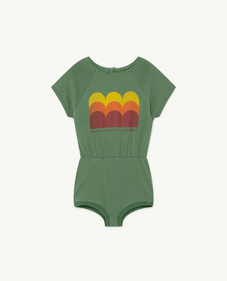 They can tumble about all day in this green body with a summery motif. Exclusively available on The Animals Observatory online shop.