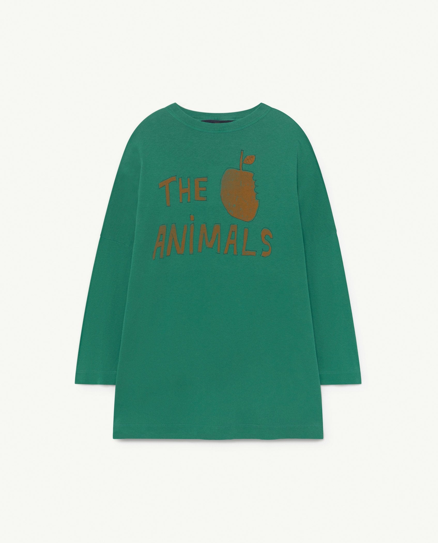 The perfect blend of comfortable and cool, 100% cotton dress in bright green with The Animals logo splashed on the front.