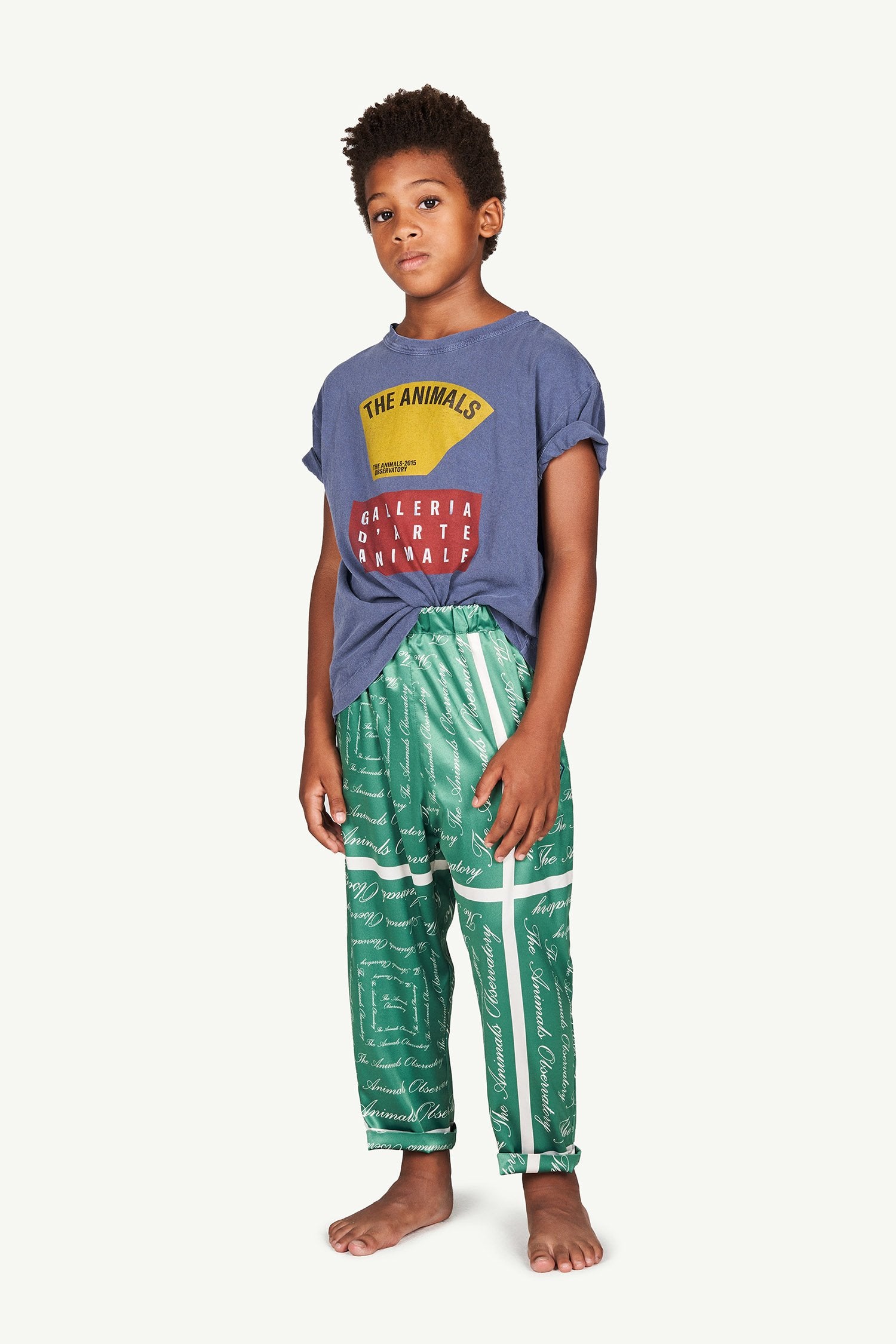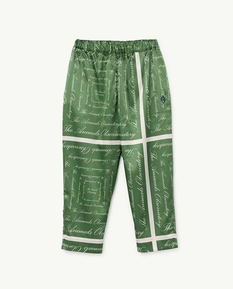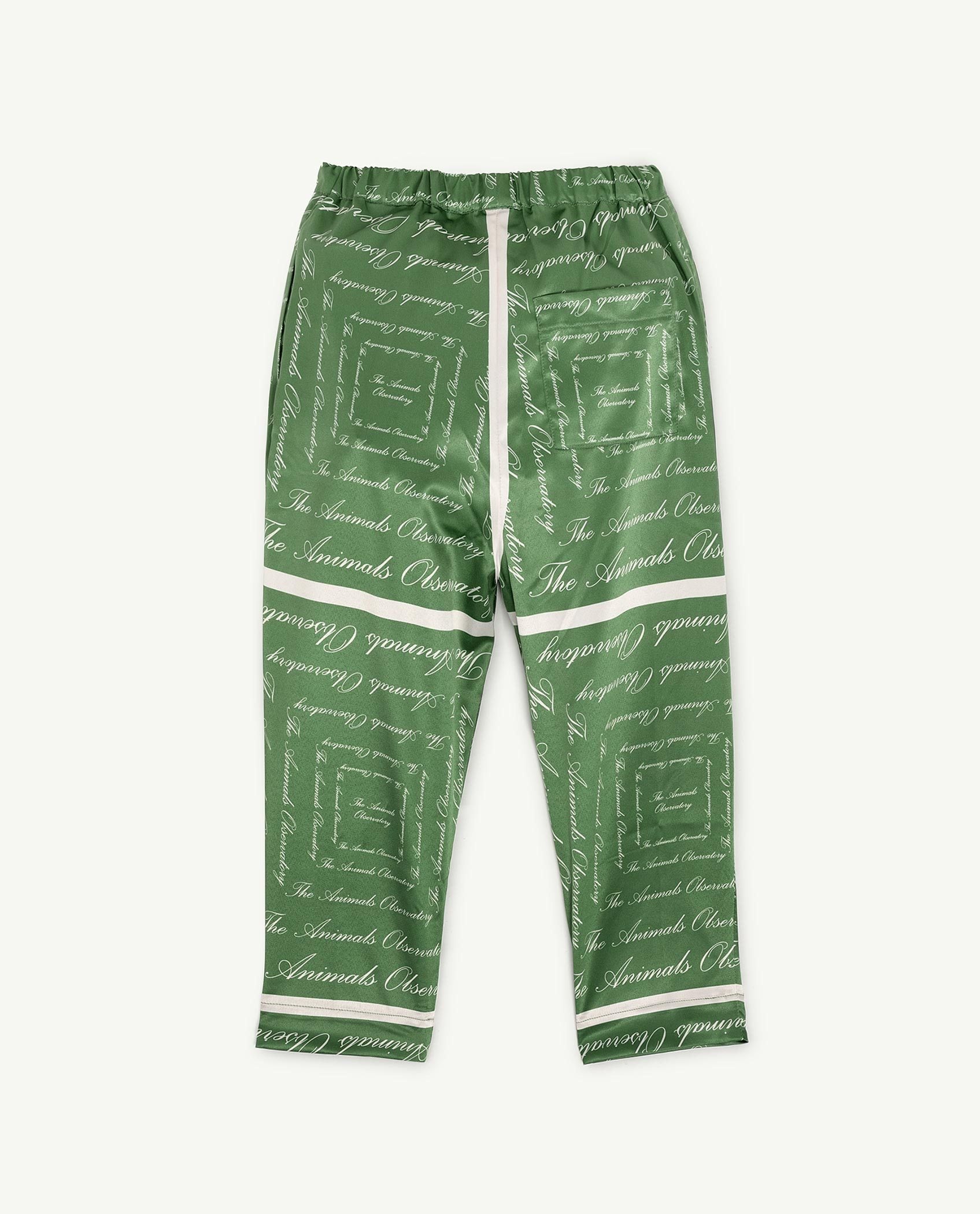The Green The Animals Silky Elephant Trousers are the most luxurious, essential trousers ever. Featuring an elasticated waist band, loose fit and all over The Animals Observatory logo print with white asymmetrical stripes.