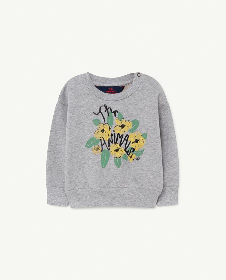 They'll want to wear this loose, comfy sweatshirt everywhere. In grey with a flower design.