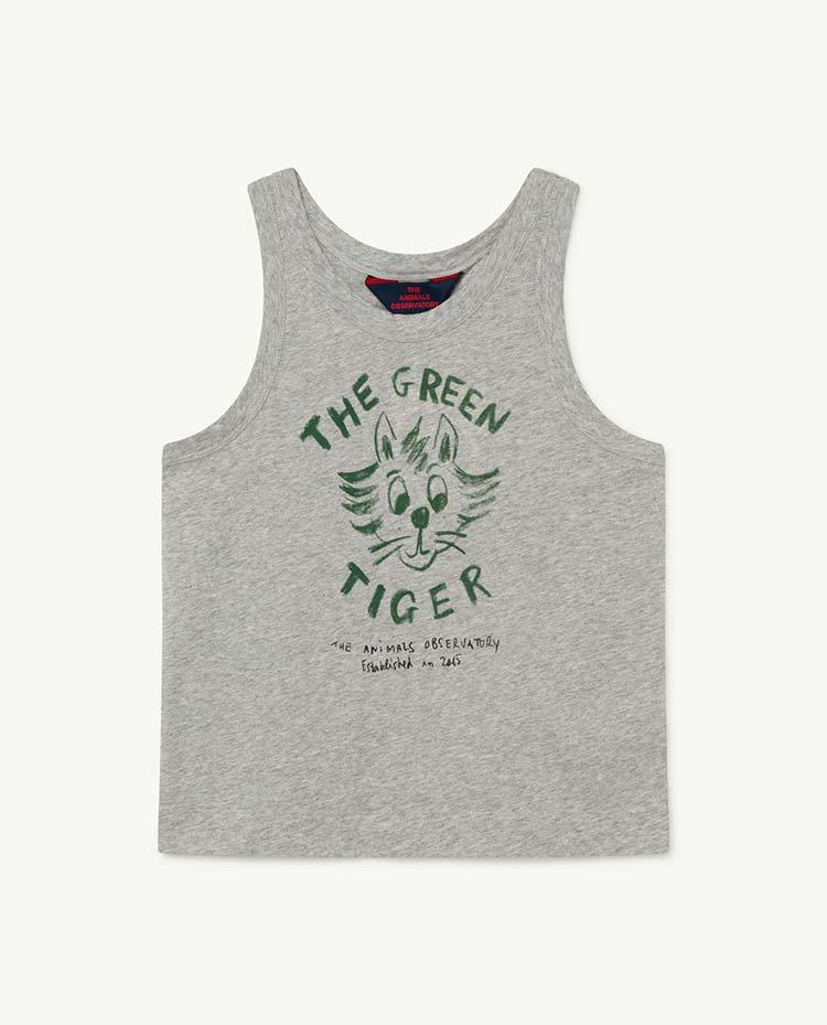 They'll love wearing this fun cotton Tank Top in gey with a tiger motif.