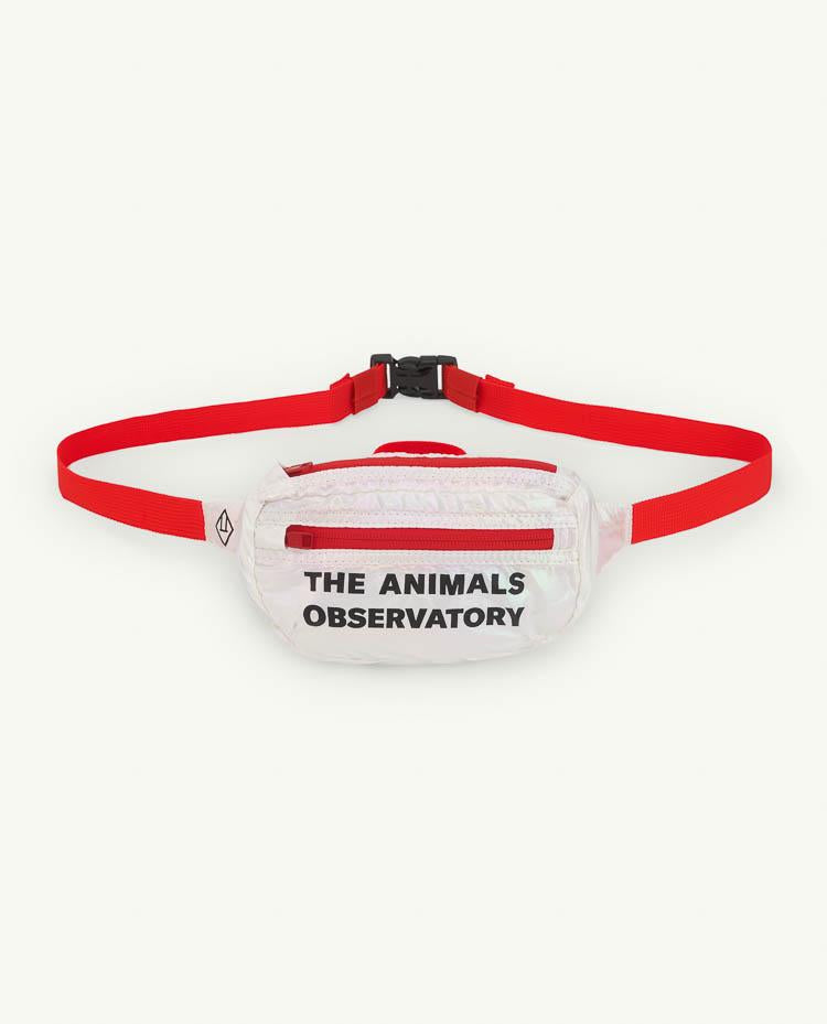 The Iridescente Fanny Pack is perfect to go anywhere and keep their most essential stuff in it. This shiny fanny pack features The Animals Observatory logo on its front and the brand's symbols on its right side. It also includes two zippers, and therefore two pockets.