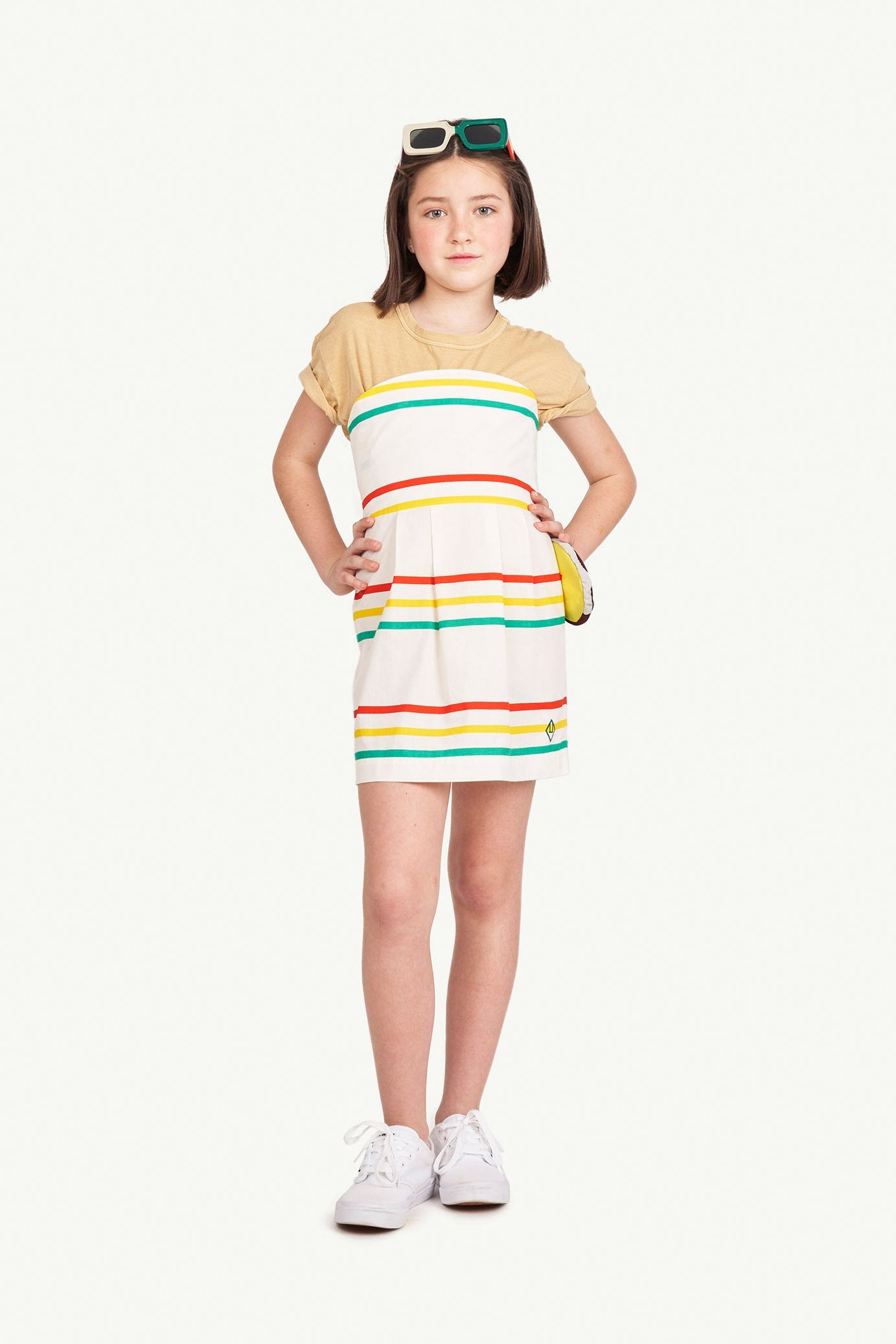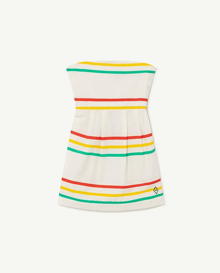 The White Stripes Dragonfly Dress features a sleeveless design and a coloured striped design - they'll never be out of it this summer! The model's height is 133 cm and is wearing size 8 years.
