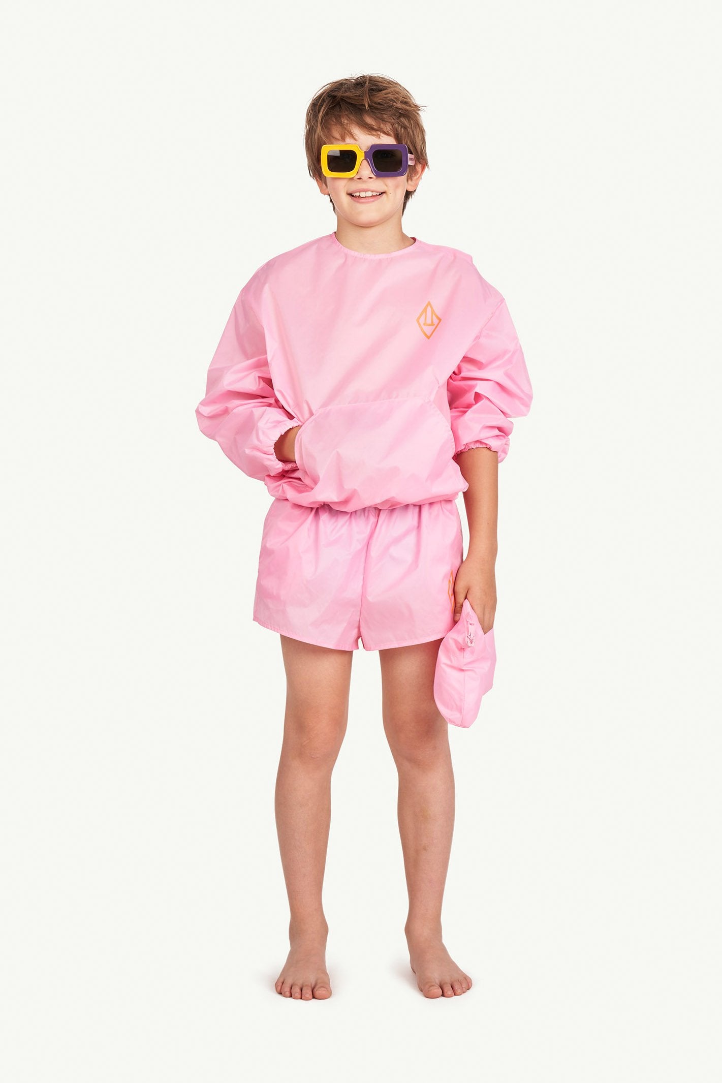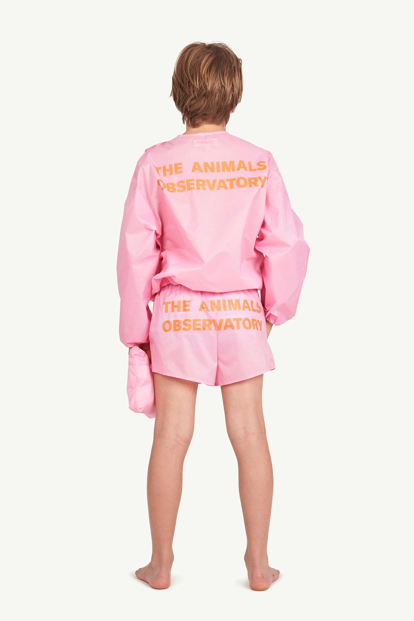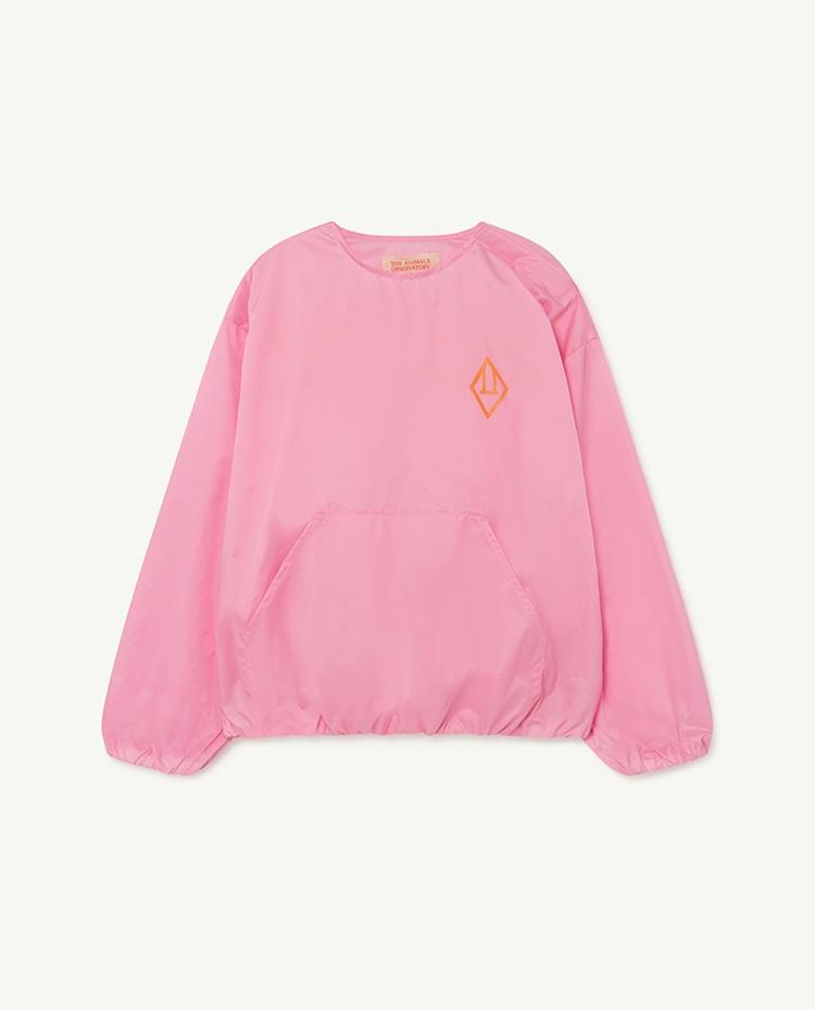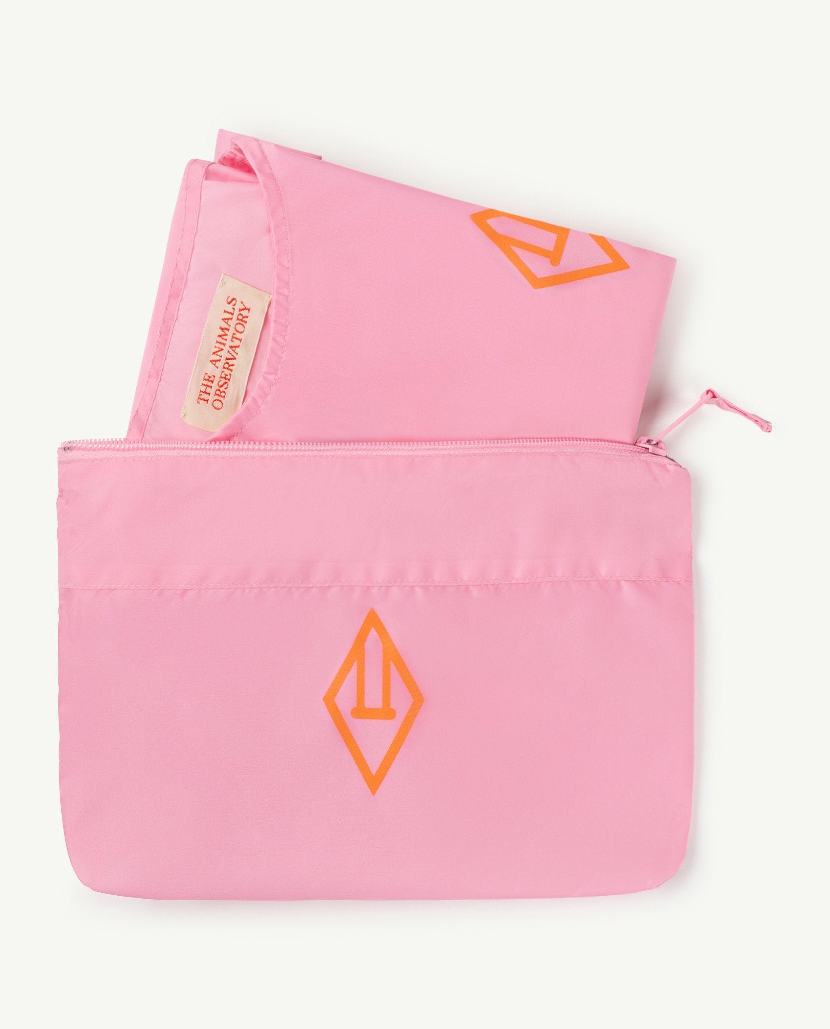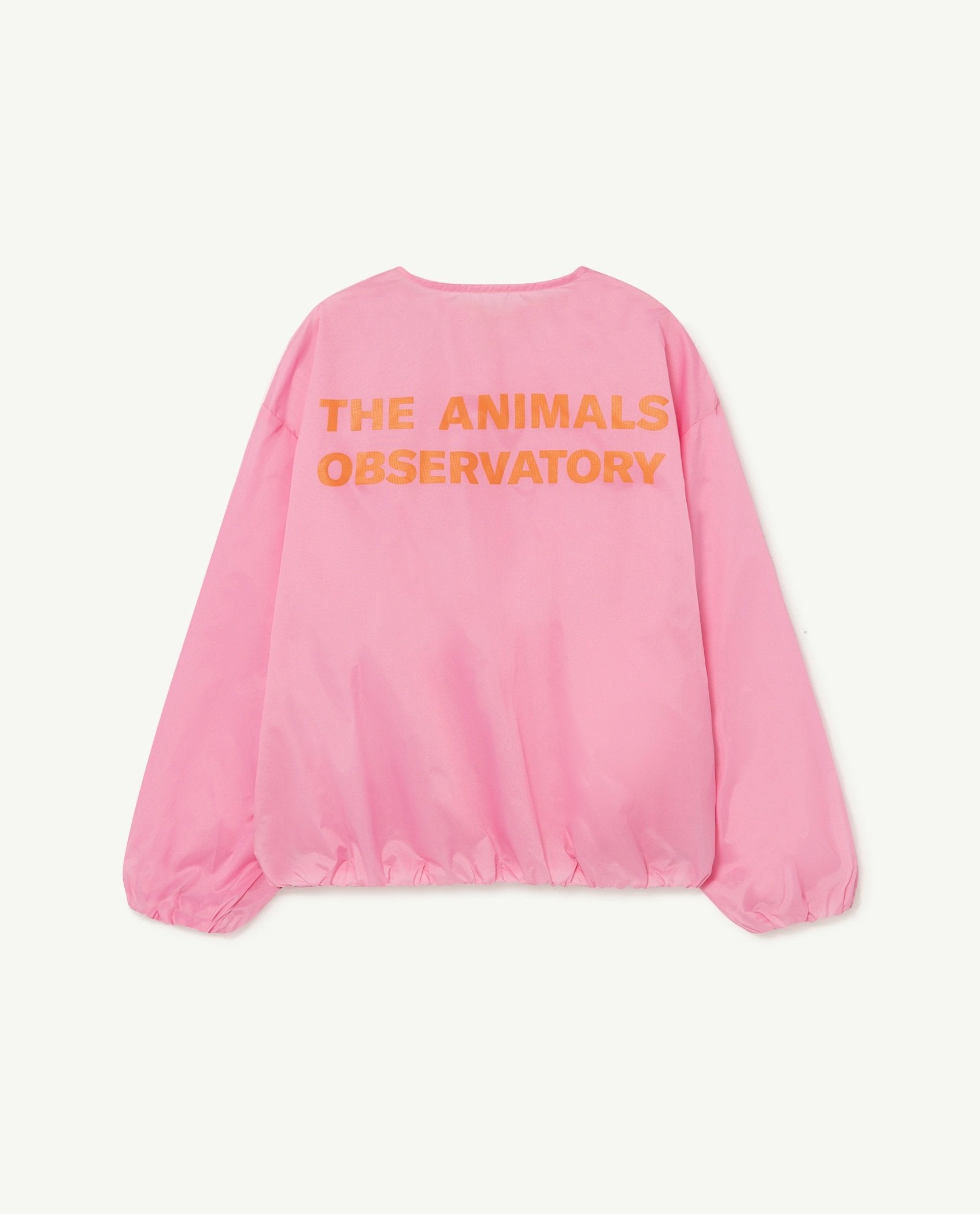 They'll never be out of the Soft Pink Logo Carp Jacket with its trendy blouson style, soft pink hue and The Animals Observatory logo in orange. It can be stored in the little bag that comes with it! The model's height is 137 cm and is wearing size 8 years.