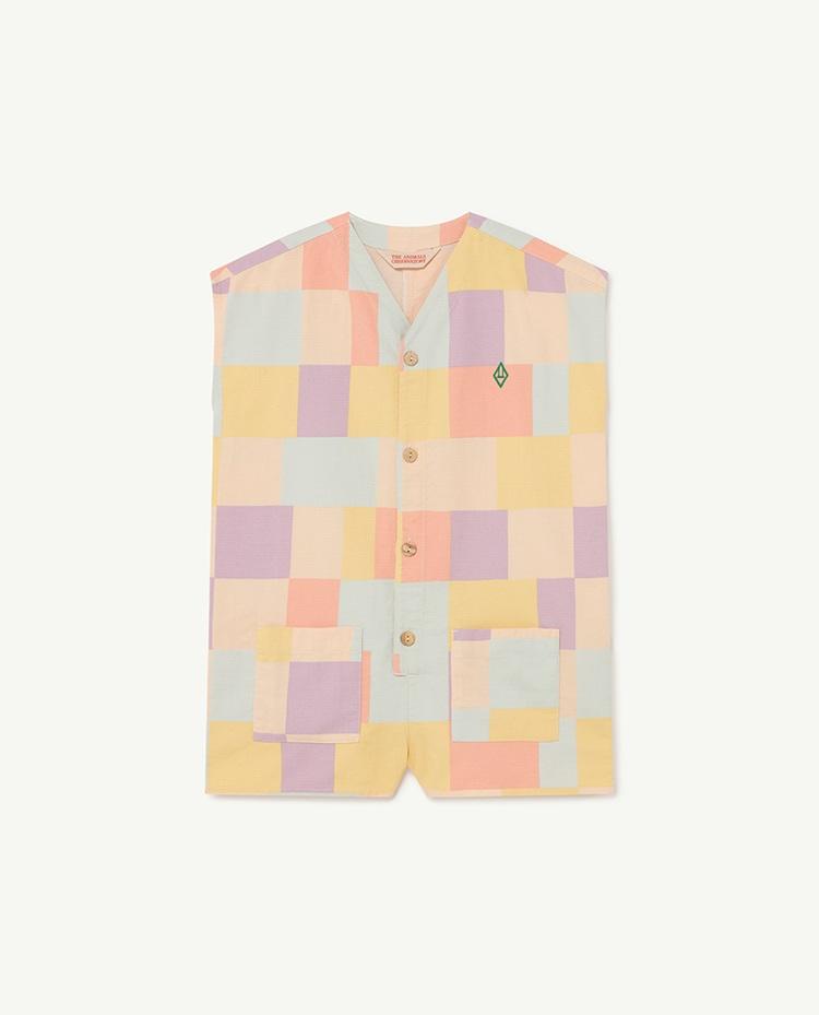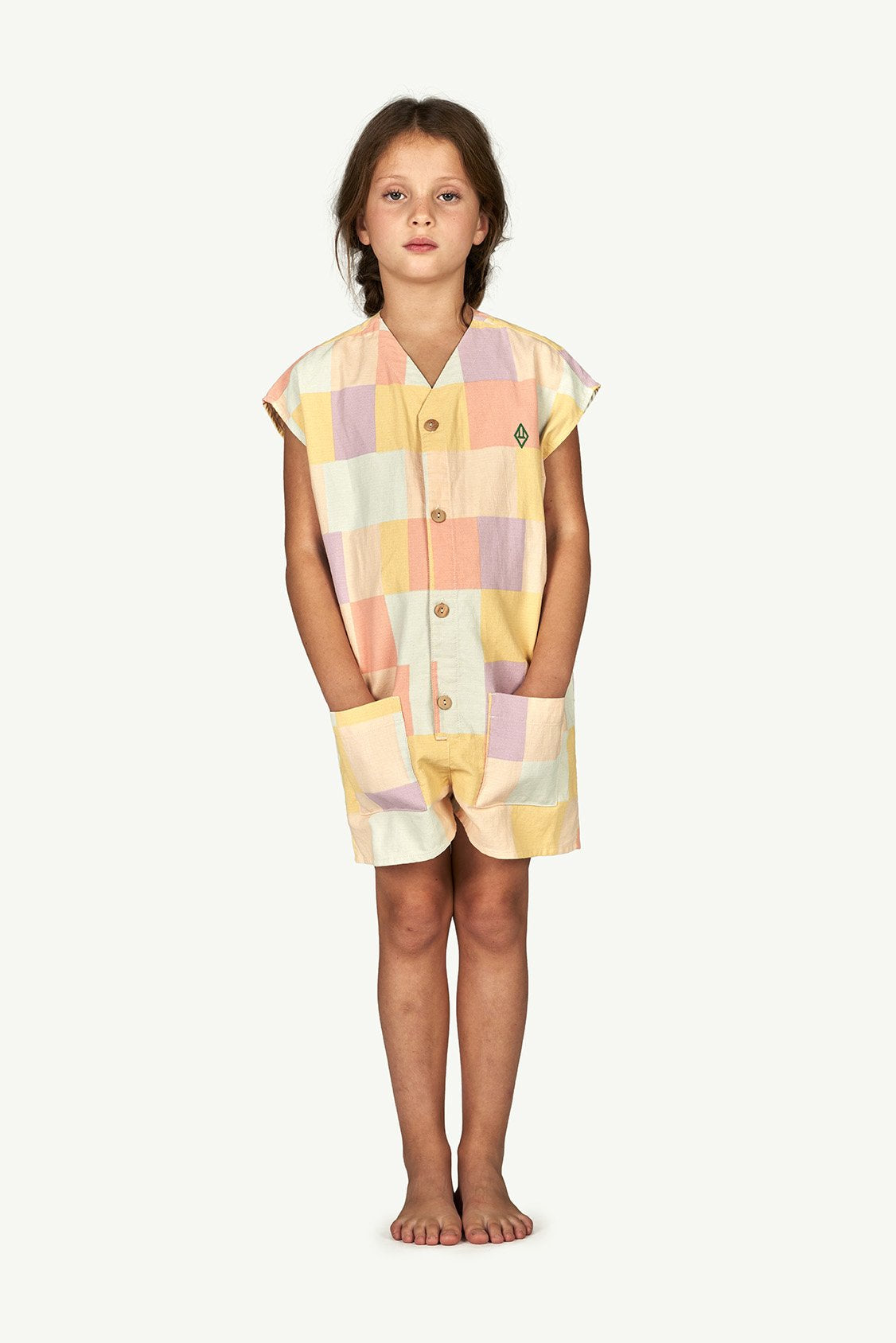 The cotton and linen mix Beige Cubes Ape Jumpsuit is loose, light and comfortable -they'll never be out of it this summer! Available exclusively on our online shop. The model's height is 130 cm and is wearing size 8 years.