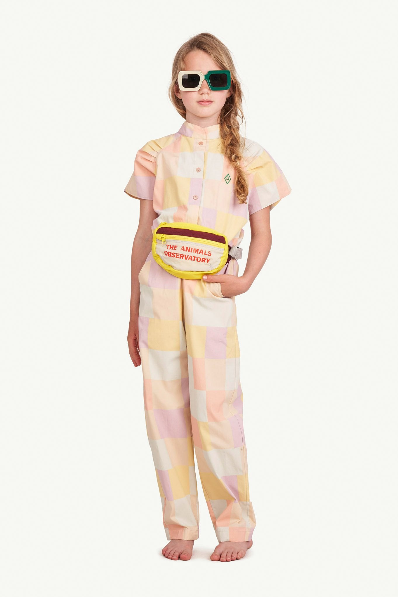 They'll be wearing the Beige Cubes Grasshopper Jumpsuit all summer long, perfect for a day playing with friends. The model's height is 134 cm and is wearing size 8 years.