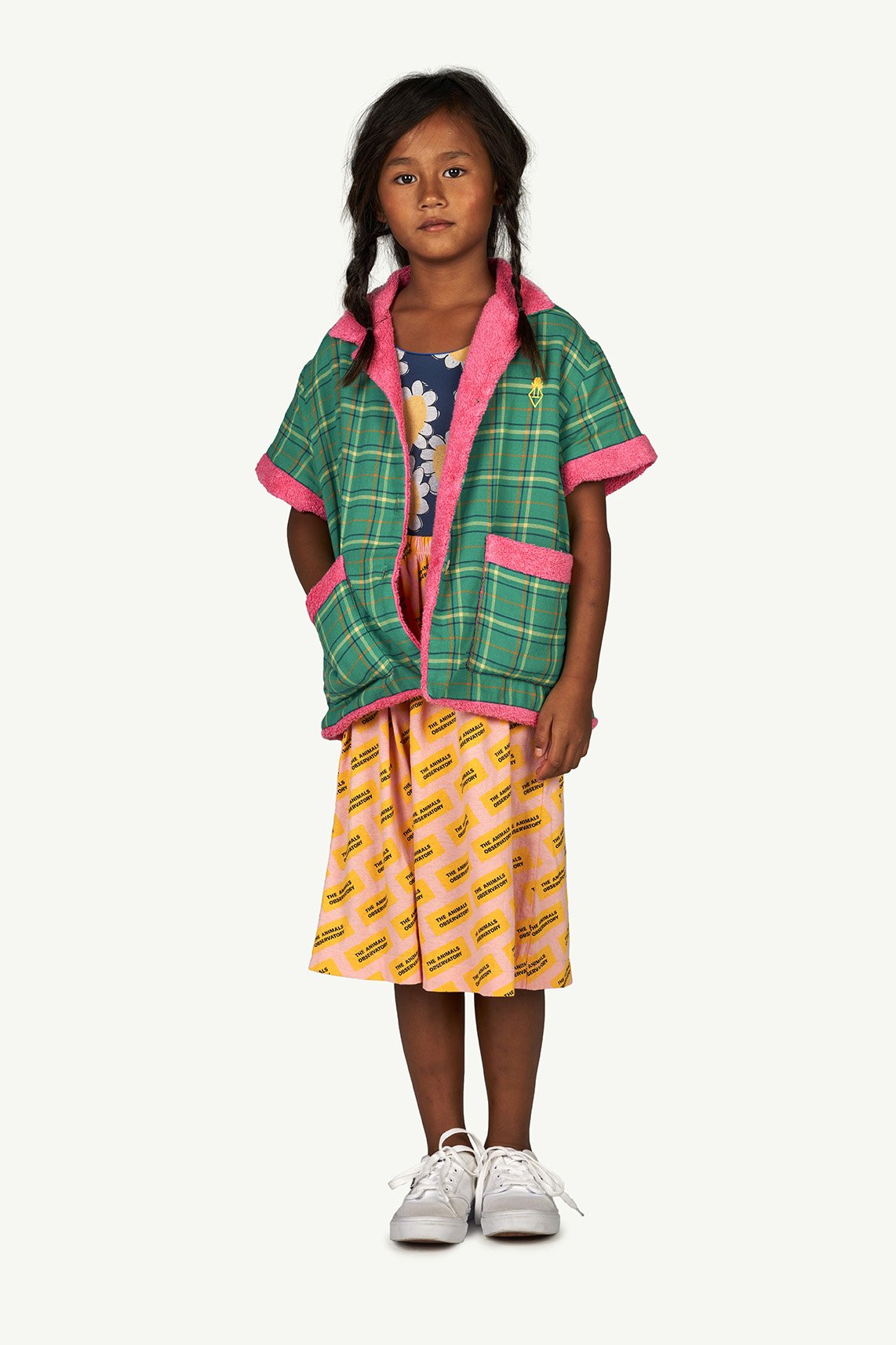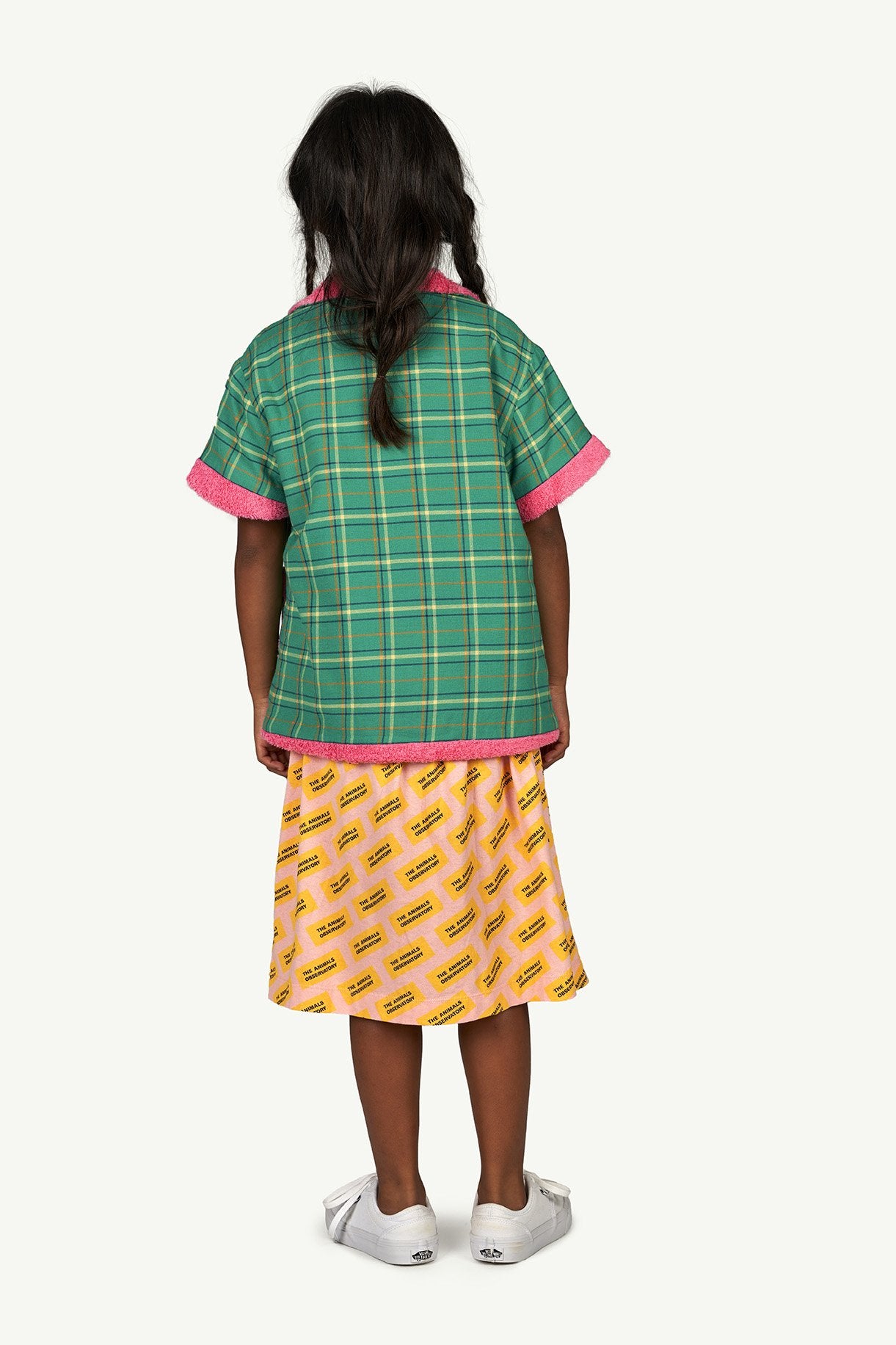 The Pink The Animals Ladybug Skirt is the epitome of effortless cool, featuring a bold yellow The Animals pattern. The model's height is 129 cm and is wearing size 8 years.