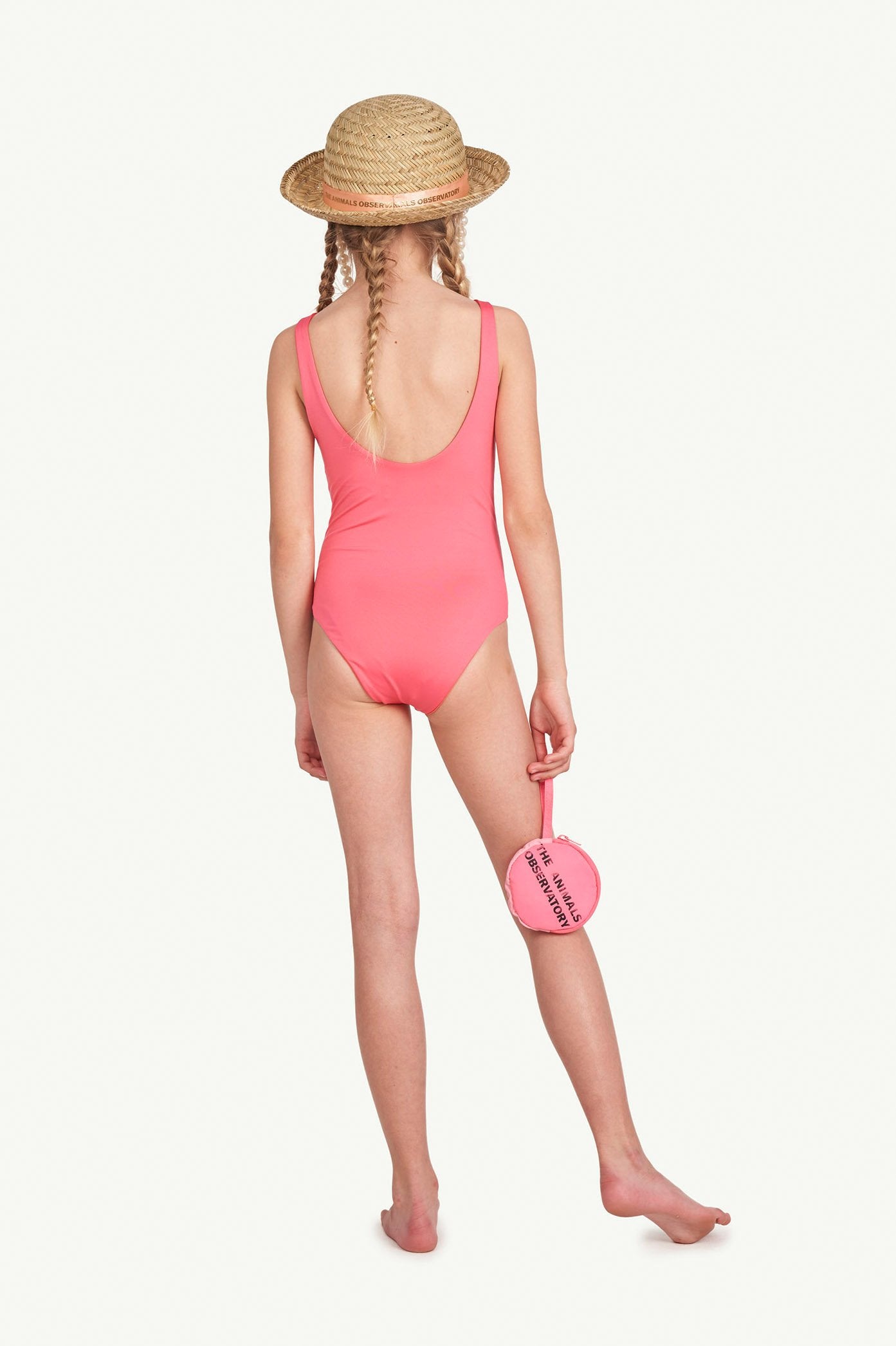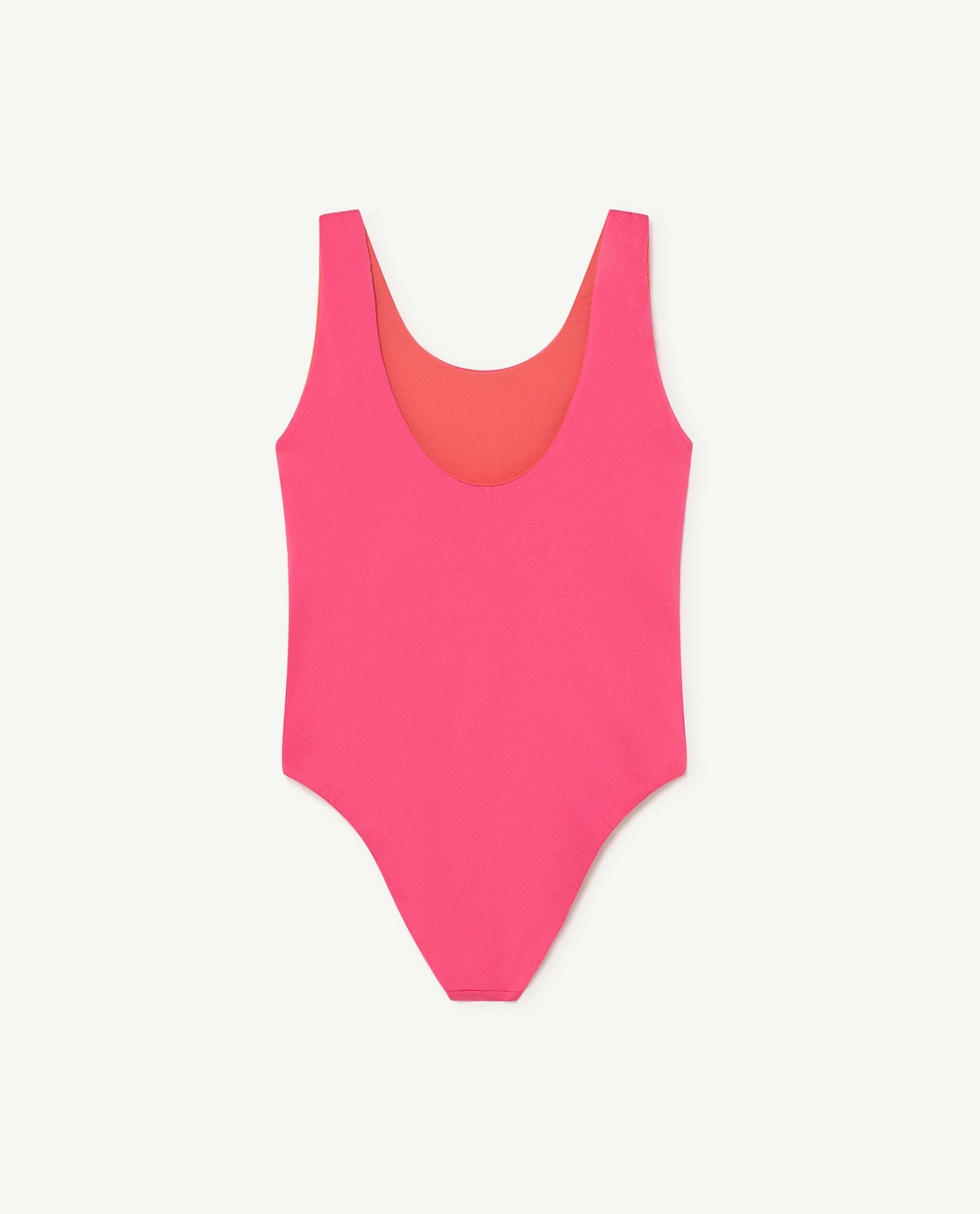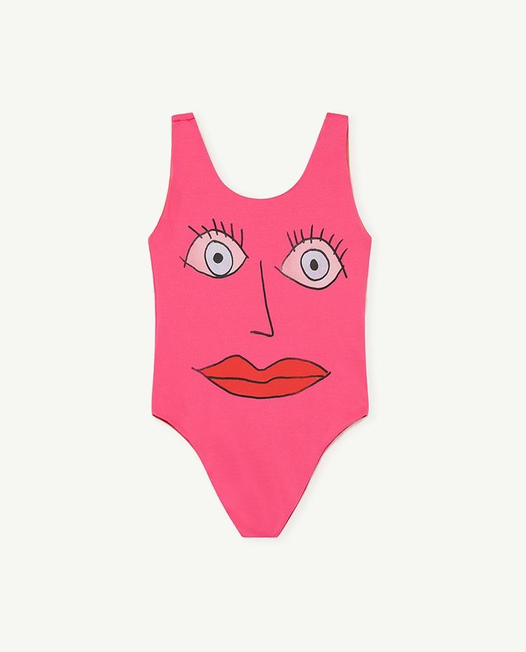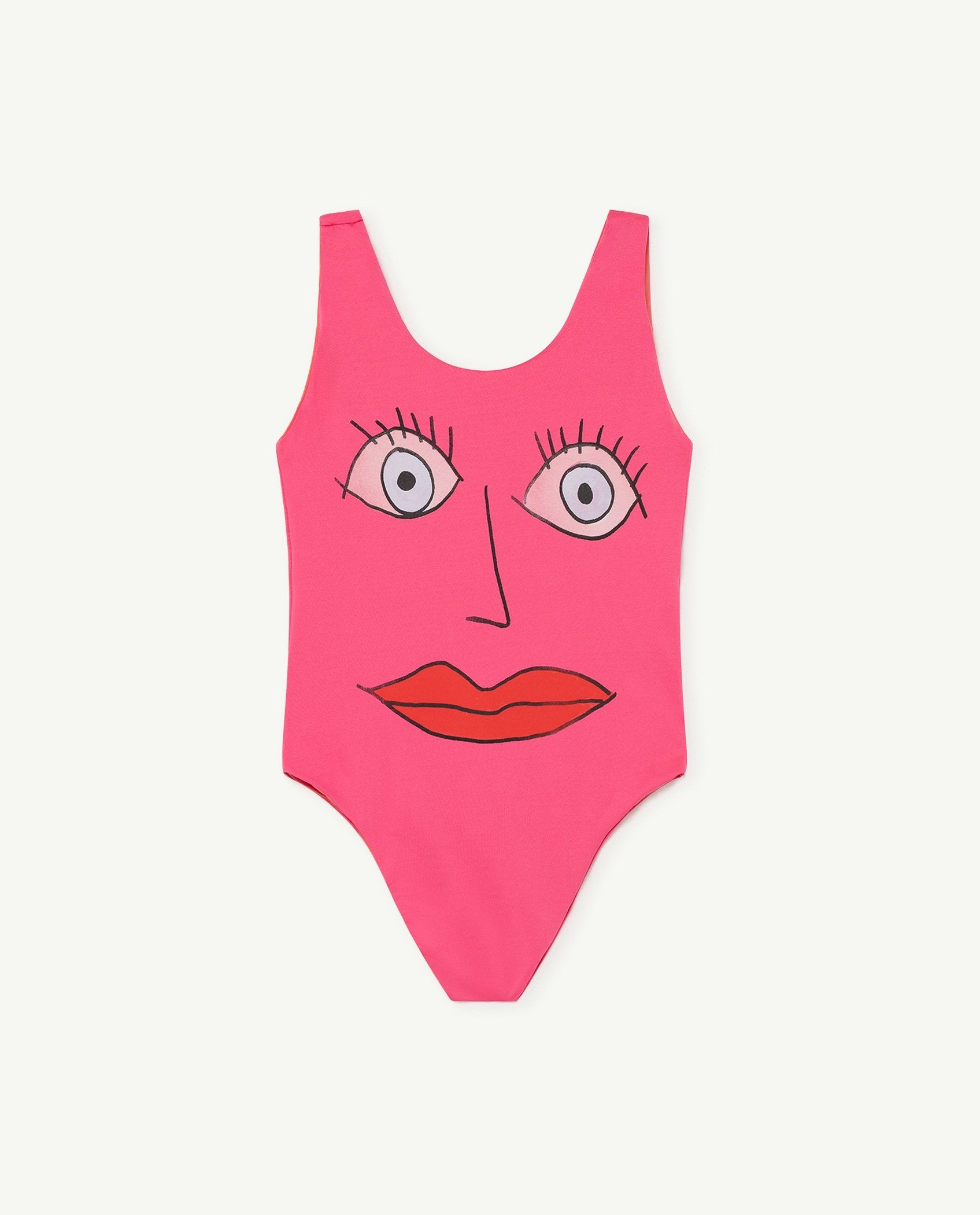 They'll stand out on the beach with the Pink Face Trout Swimsuit, which features an eye-catching face motif. Made from Upcycled Marine Plastic is made only from plastic waste that has been collected from the water or from the water’s edge. The model's height is 129 cm and is wearing size 8 years.