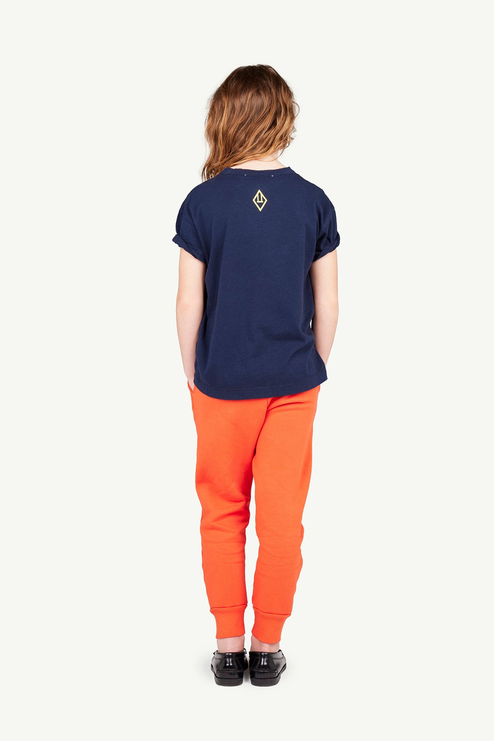 The Navy Orion Kids T-Shirt in a regular fit features The Animals Observatory logotype on a plain, basic yet elegant piece of clothing. With a comfortable round collar, this T-Shirt is 100% made of cotton, which will ensure its durability as well as a really nice feeling when wearing it. The model is 131 cm and is wearing size 8.