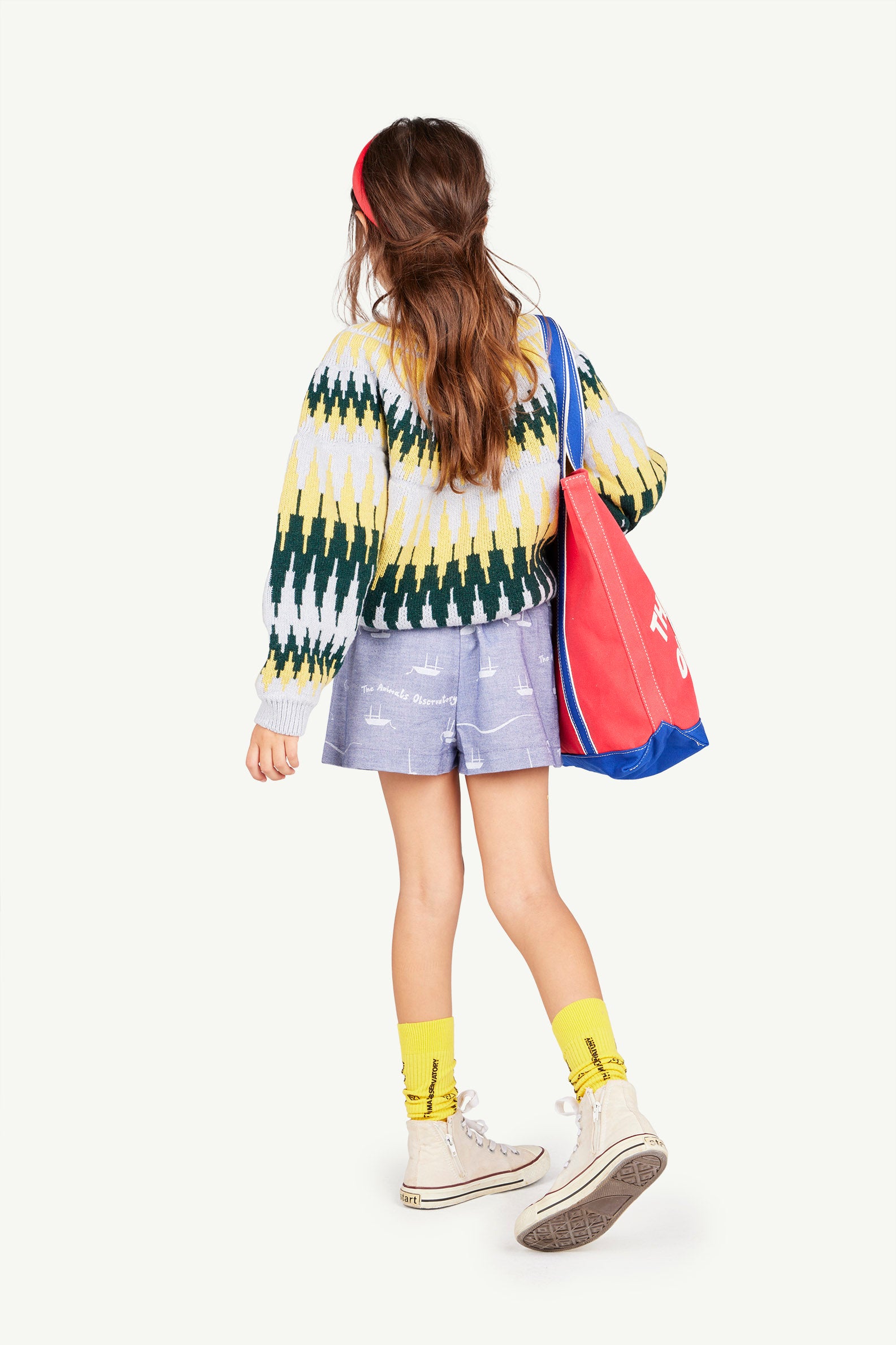 Neither a kids mini skirt, nor a pair of shorts, but both! It features minimalist boat sketches.