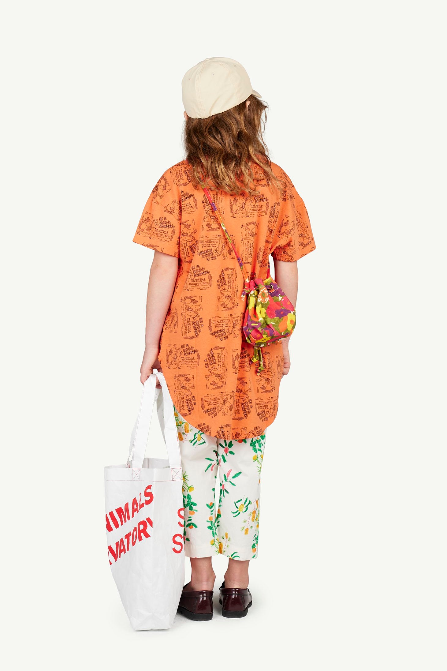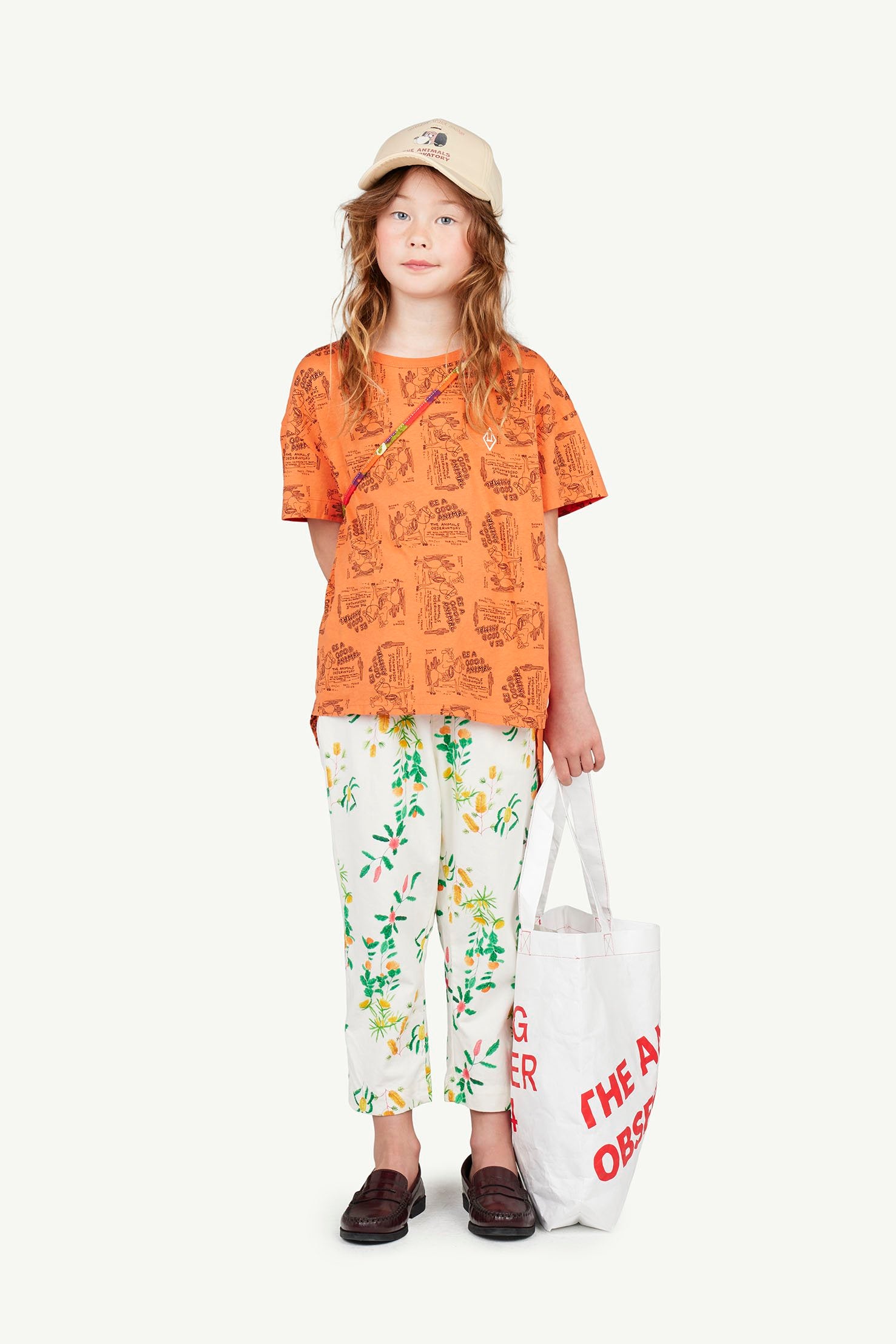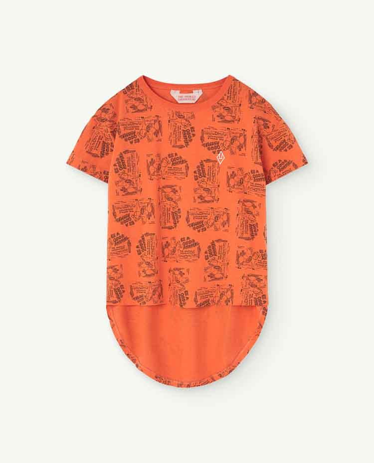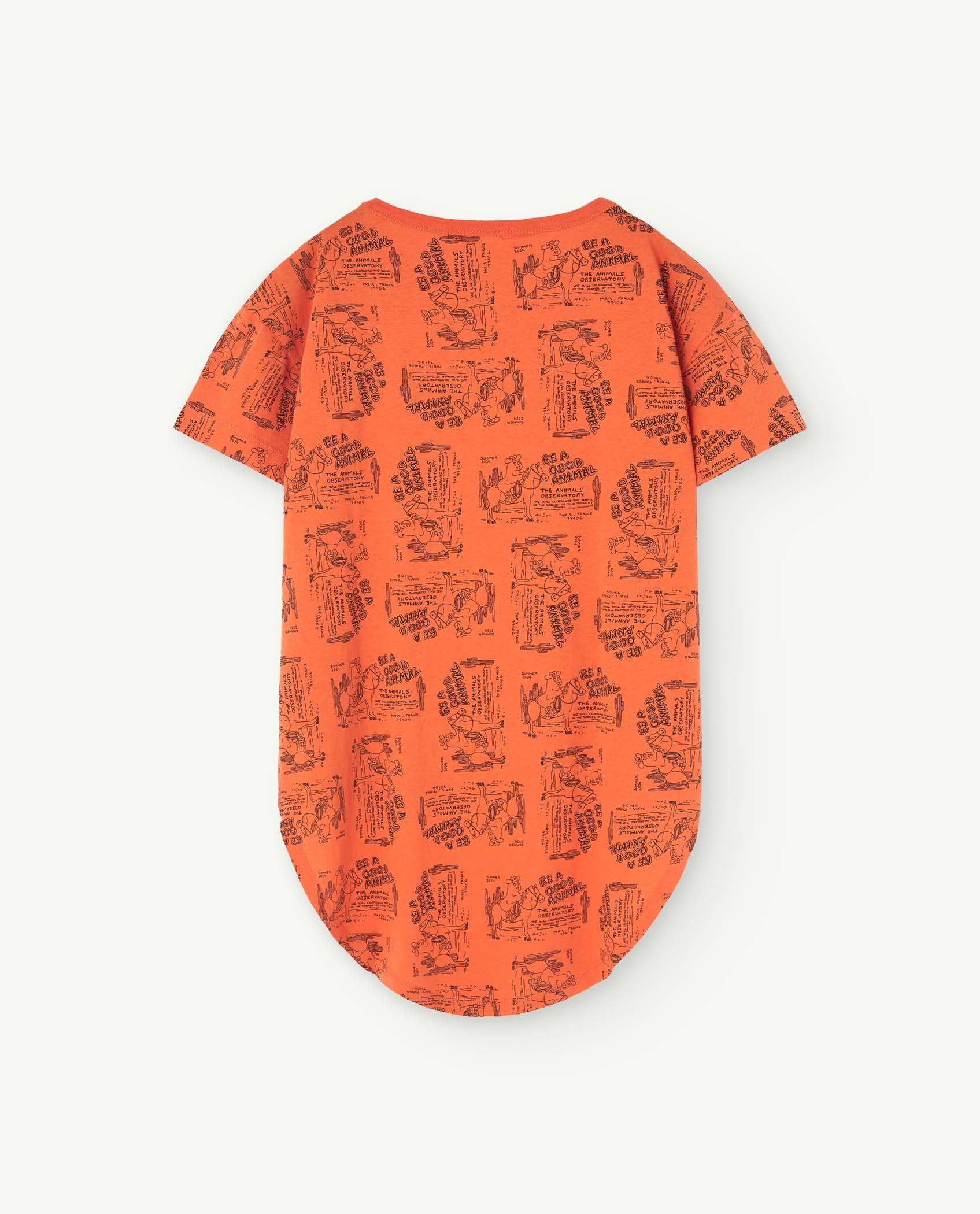 The Orange Hare T-Shirt in an oversize fit is the clothing piece in which a t-shirt meets a tunic in a truly funky way, so the back is longer than the front. This style has a friendly cowboy pattern all over it as well as a round neck. It is also 100% made of cotton.