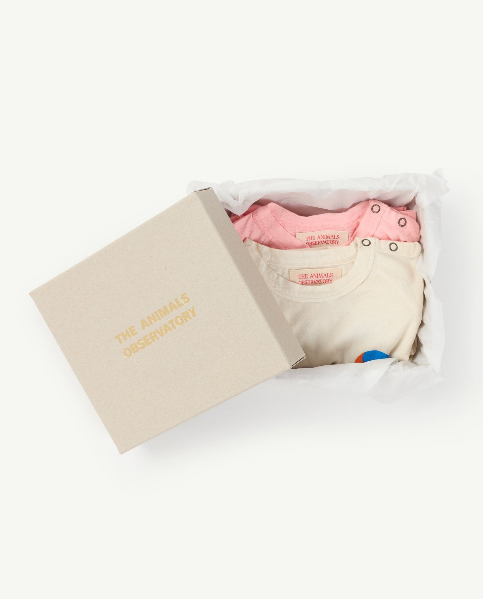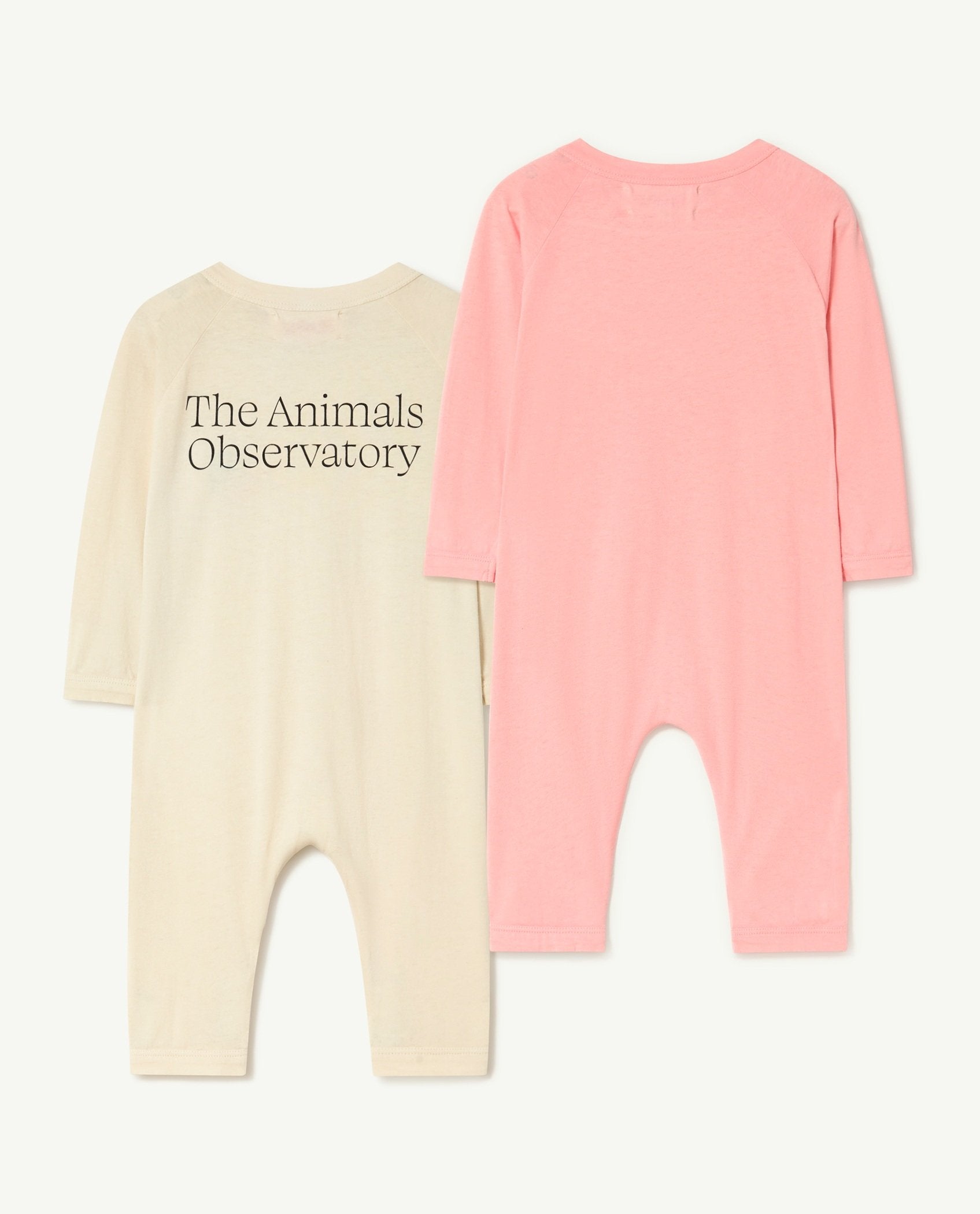A pack of two Owl Baby Onesies, with long sleeves and long pants that will make them look so lovely. It includes an Owl baby onesie in ecru, with The Animals Observatory in capital letters on the back, and a second one with a beautiful mediterranean jar print. Their sizes go from 6 to 24 months.