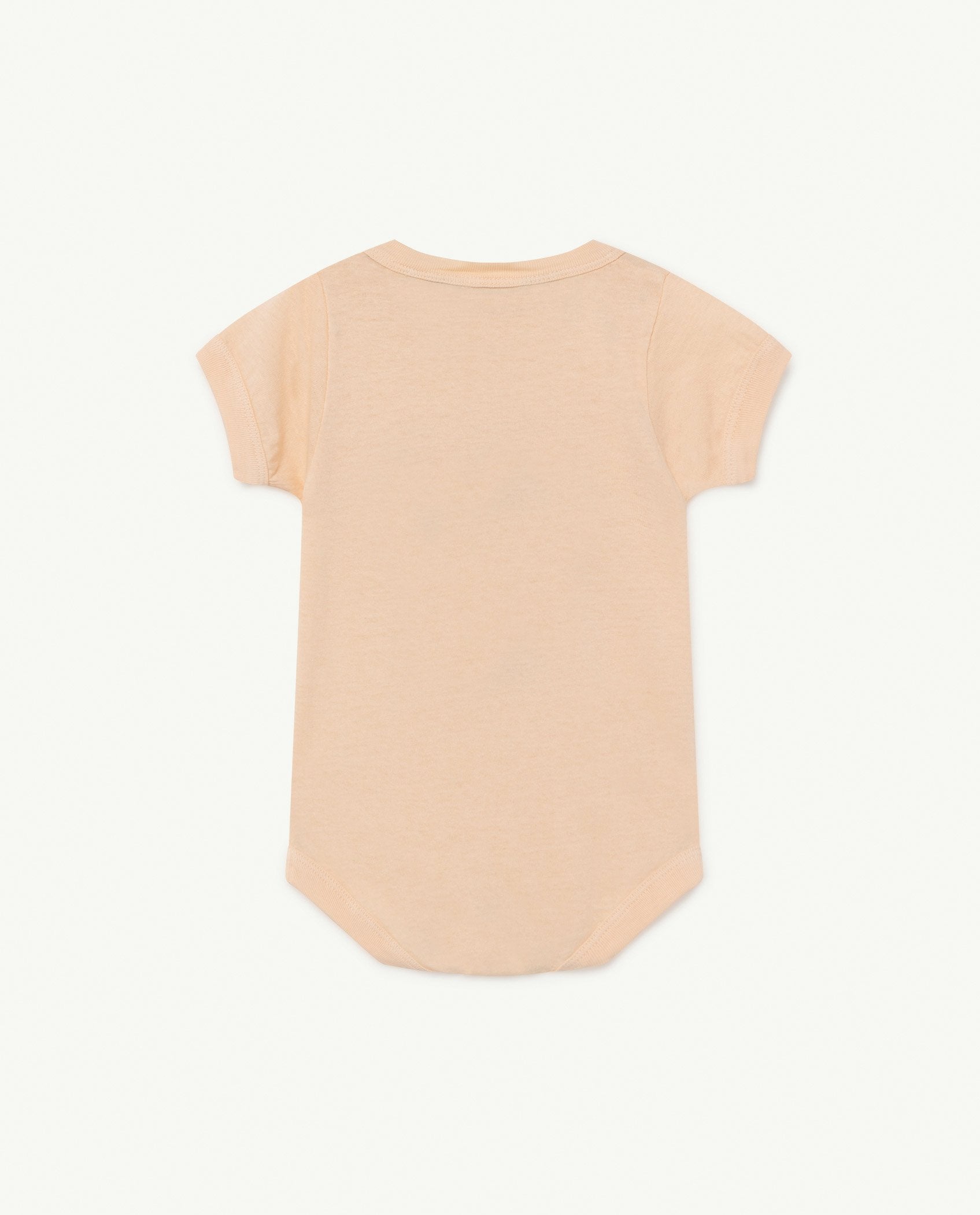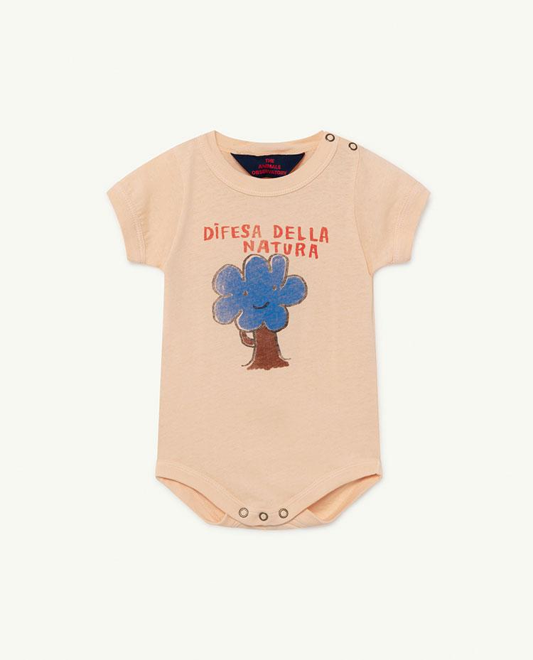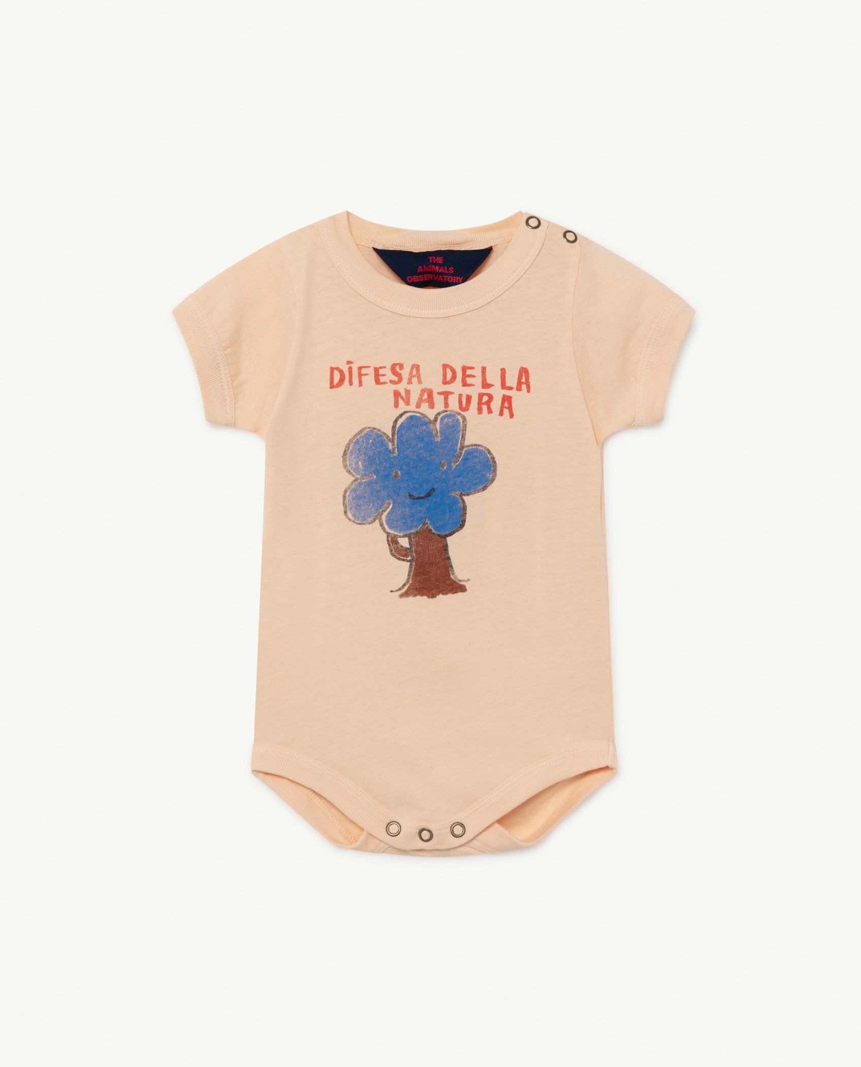 This T-shirt body is so easy to wear with poppers on the shoulder and the bottom, in peach with an adorable tree motif.