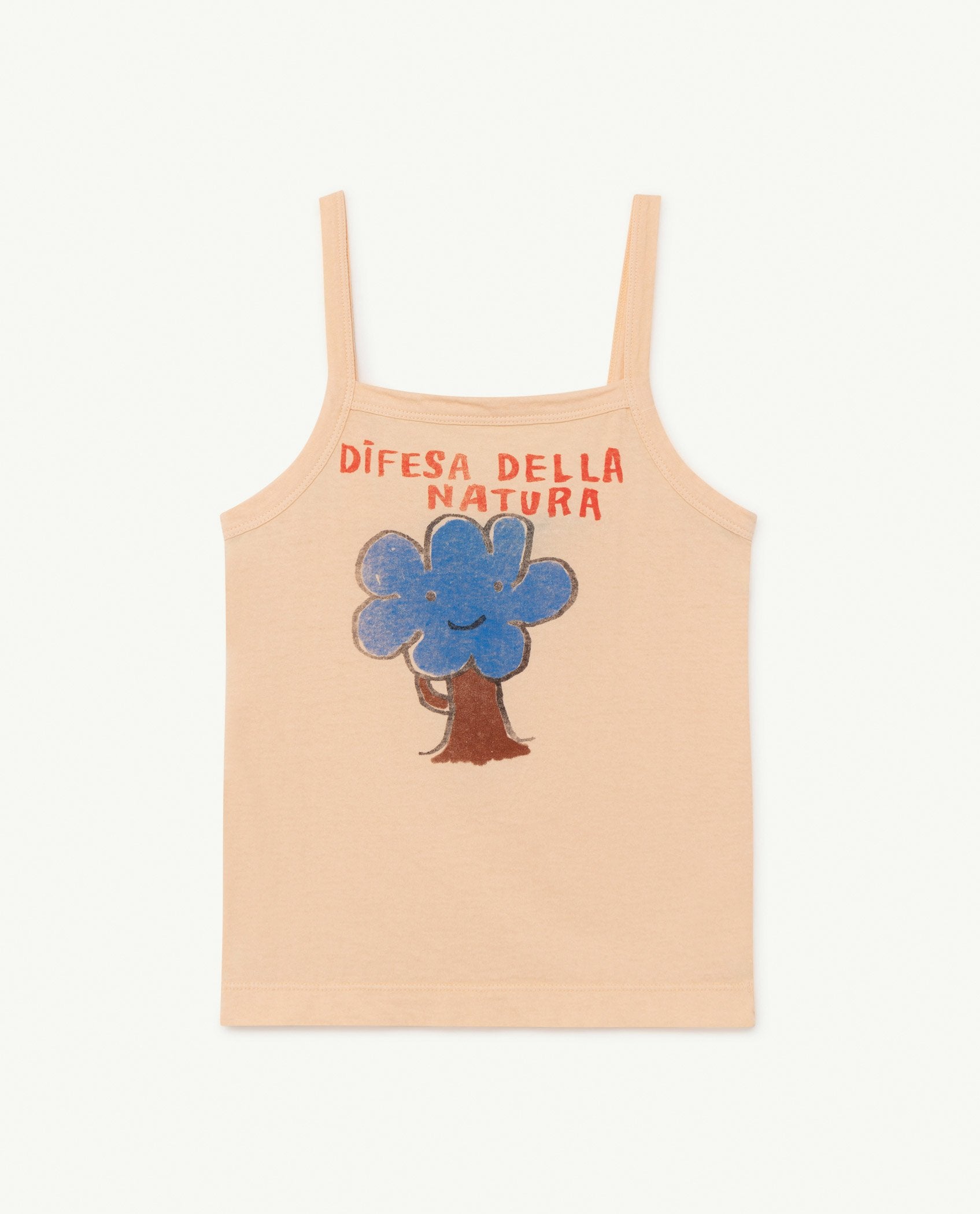 A sleeveless top that will keep them cool on summer afternoons, in peach featuring an adorable tree motif.