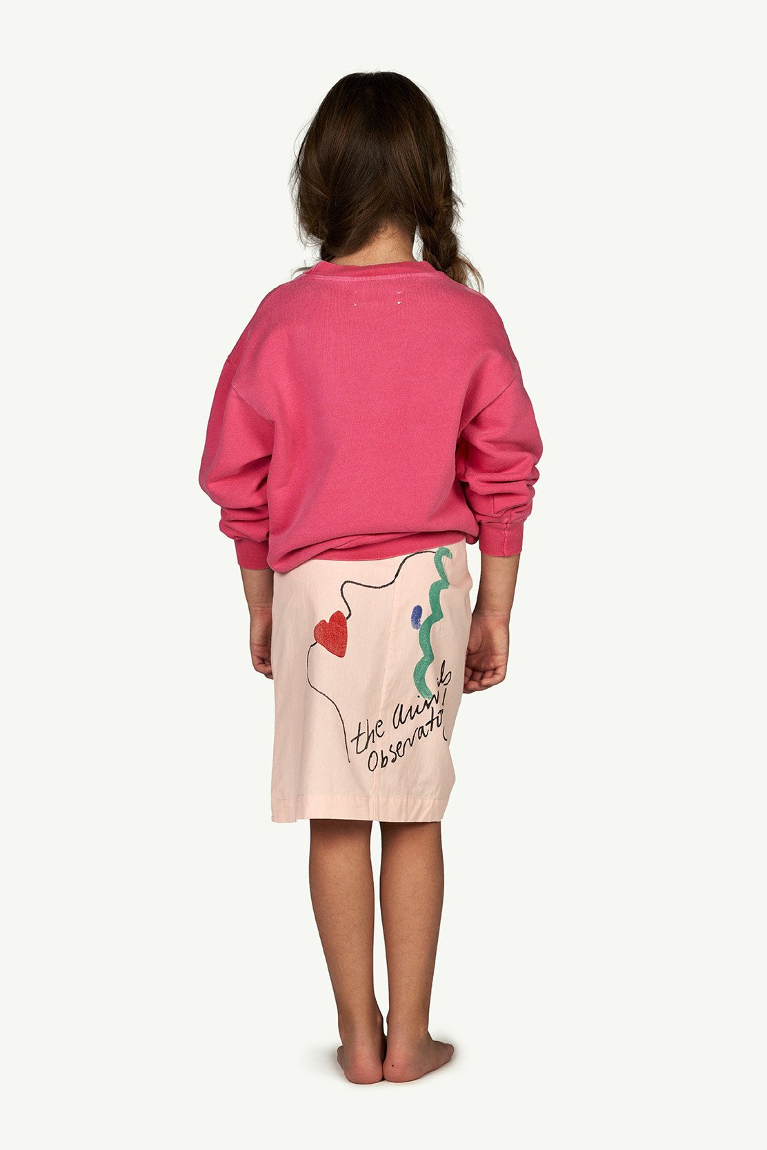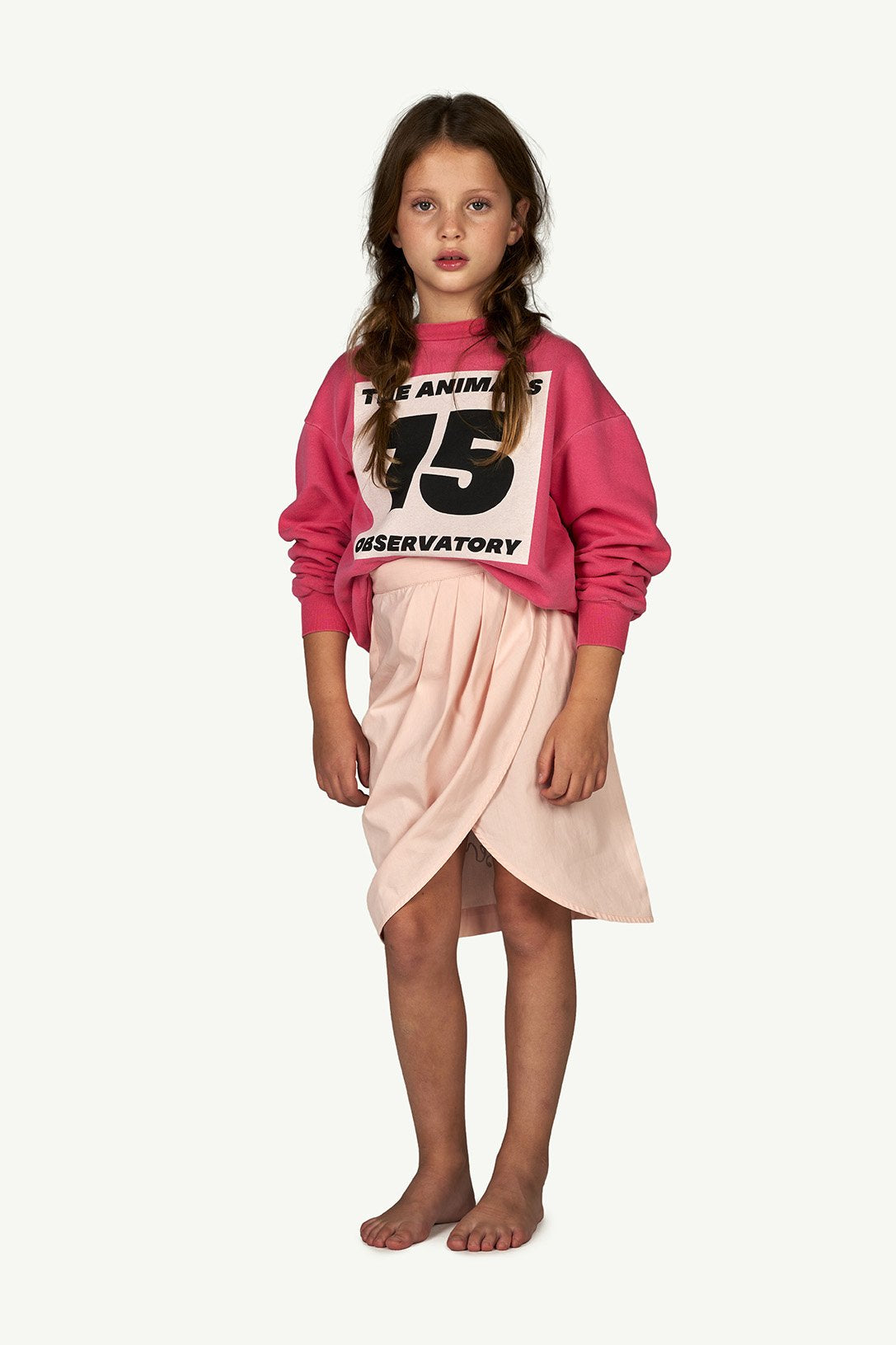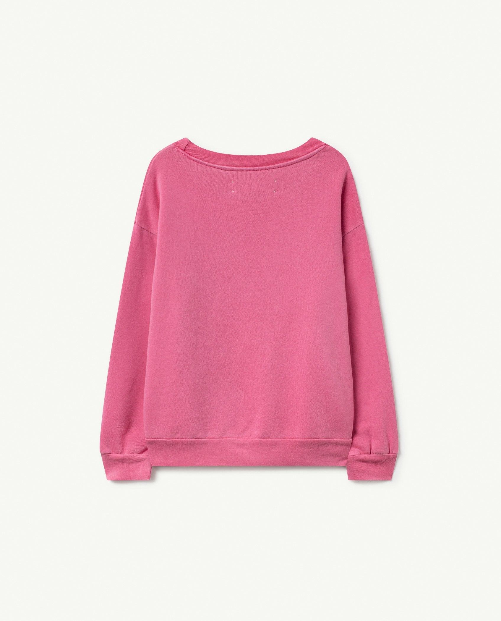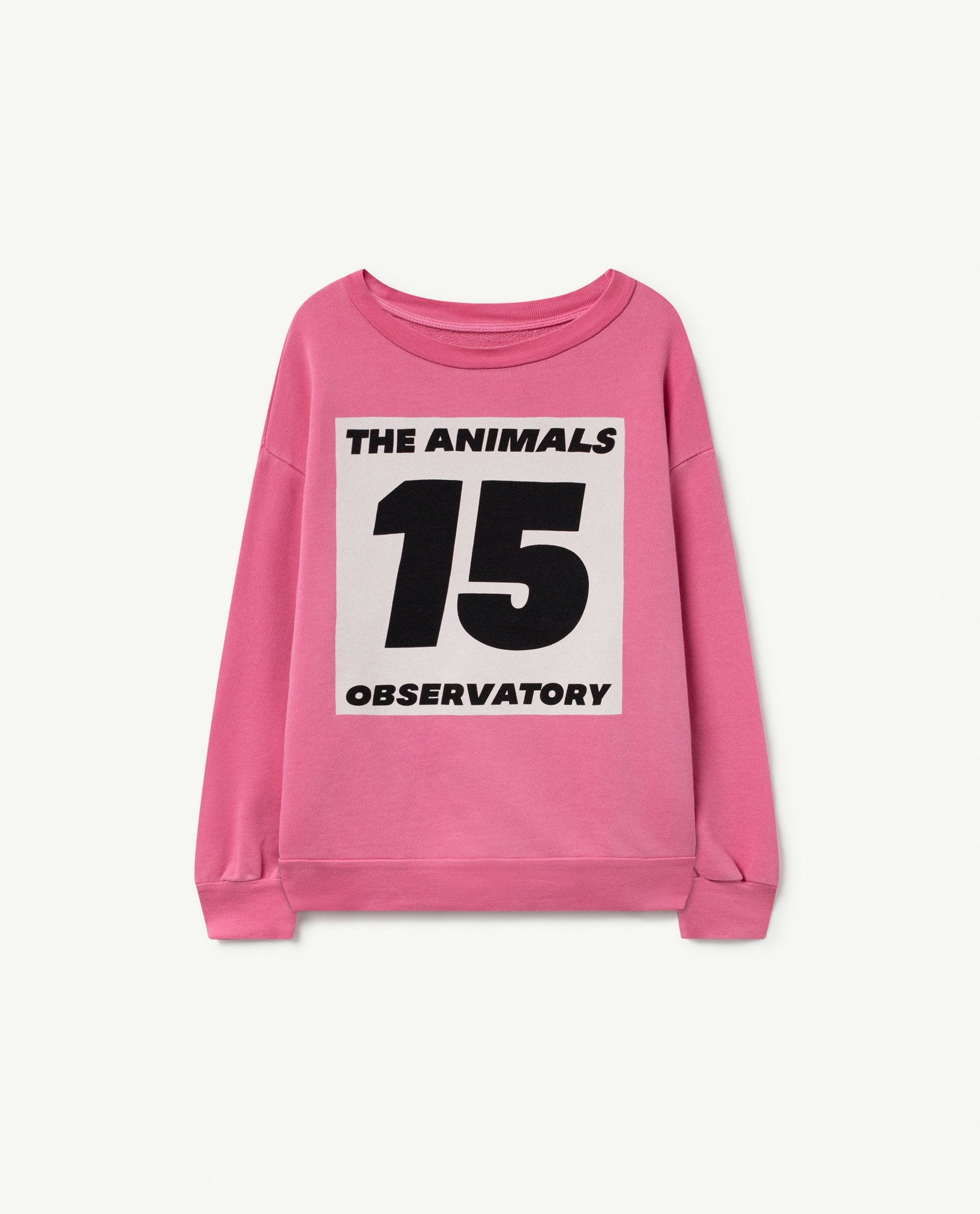 The Pink 15 Bear Sweatshirt is made in 100% soft cosy cotton with a wide neck and slpuchy fit, featuring a bold print on the front. The model's height is 130 cm and is wearing size 8 years.
