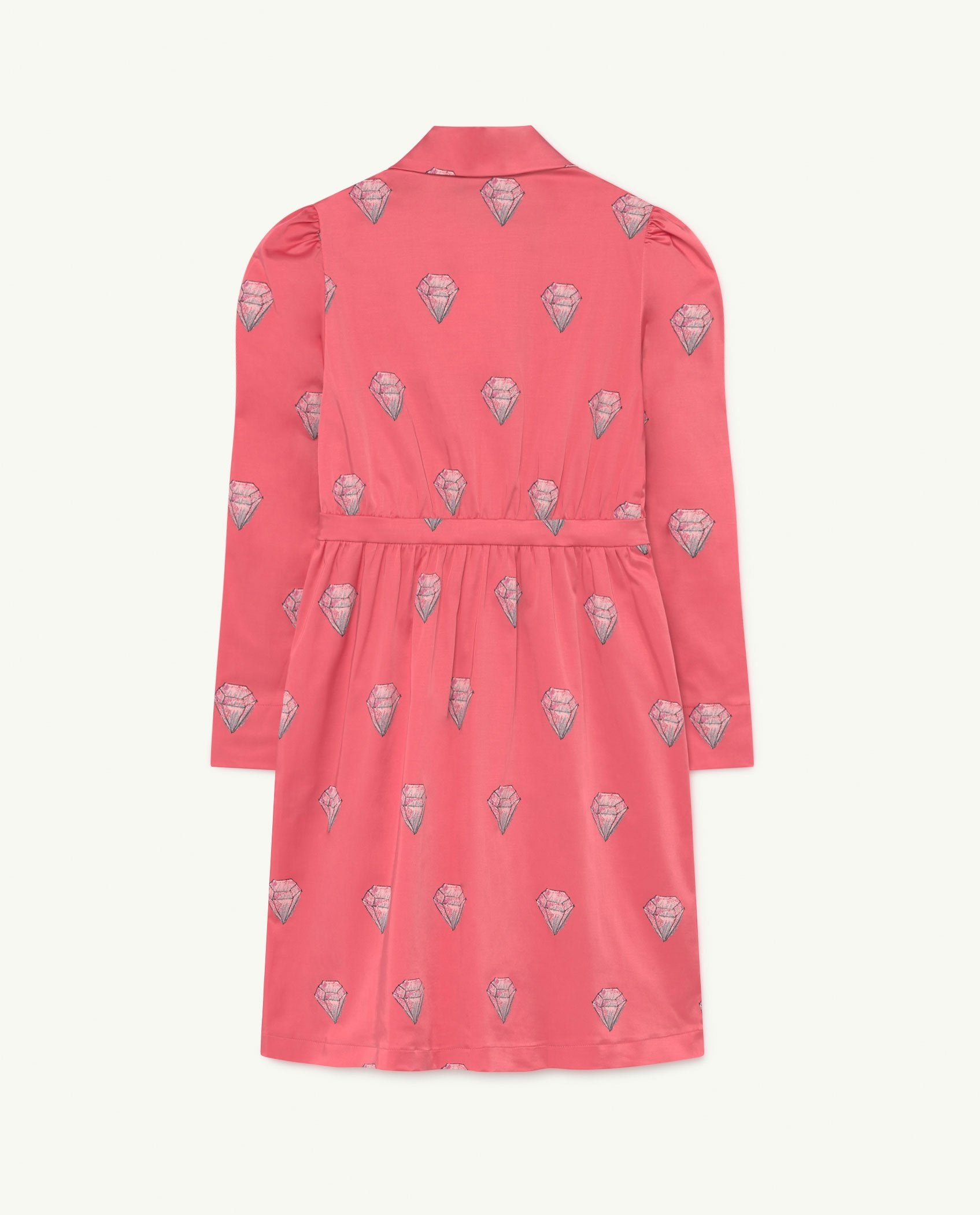 A button down dress to be worn all winter and all autumn in a pink diamond print.