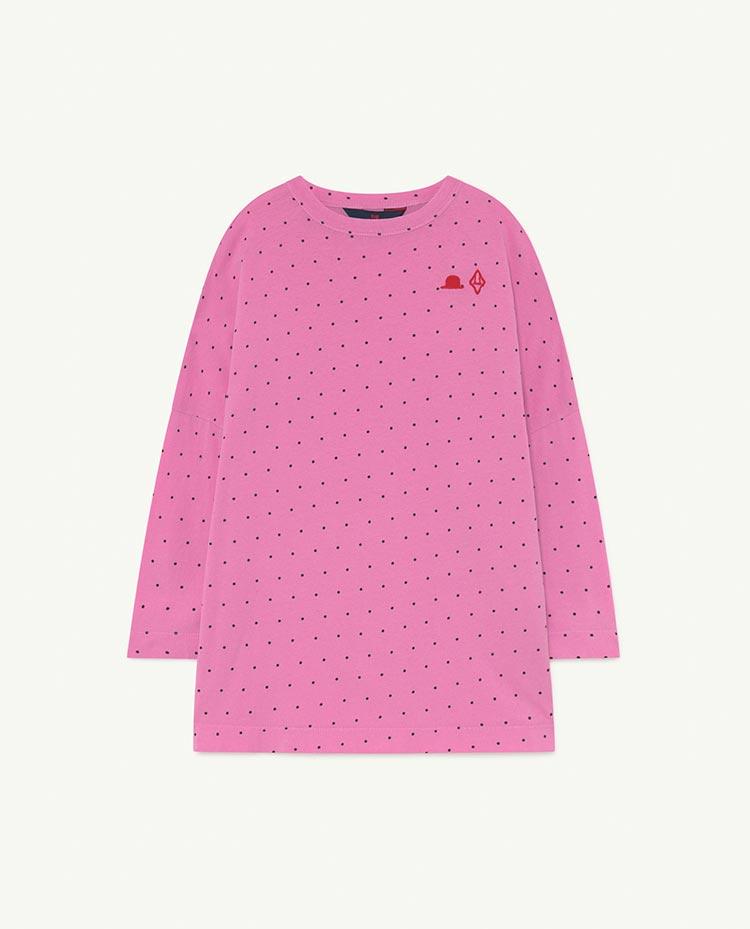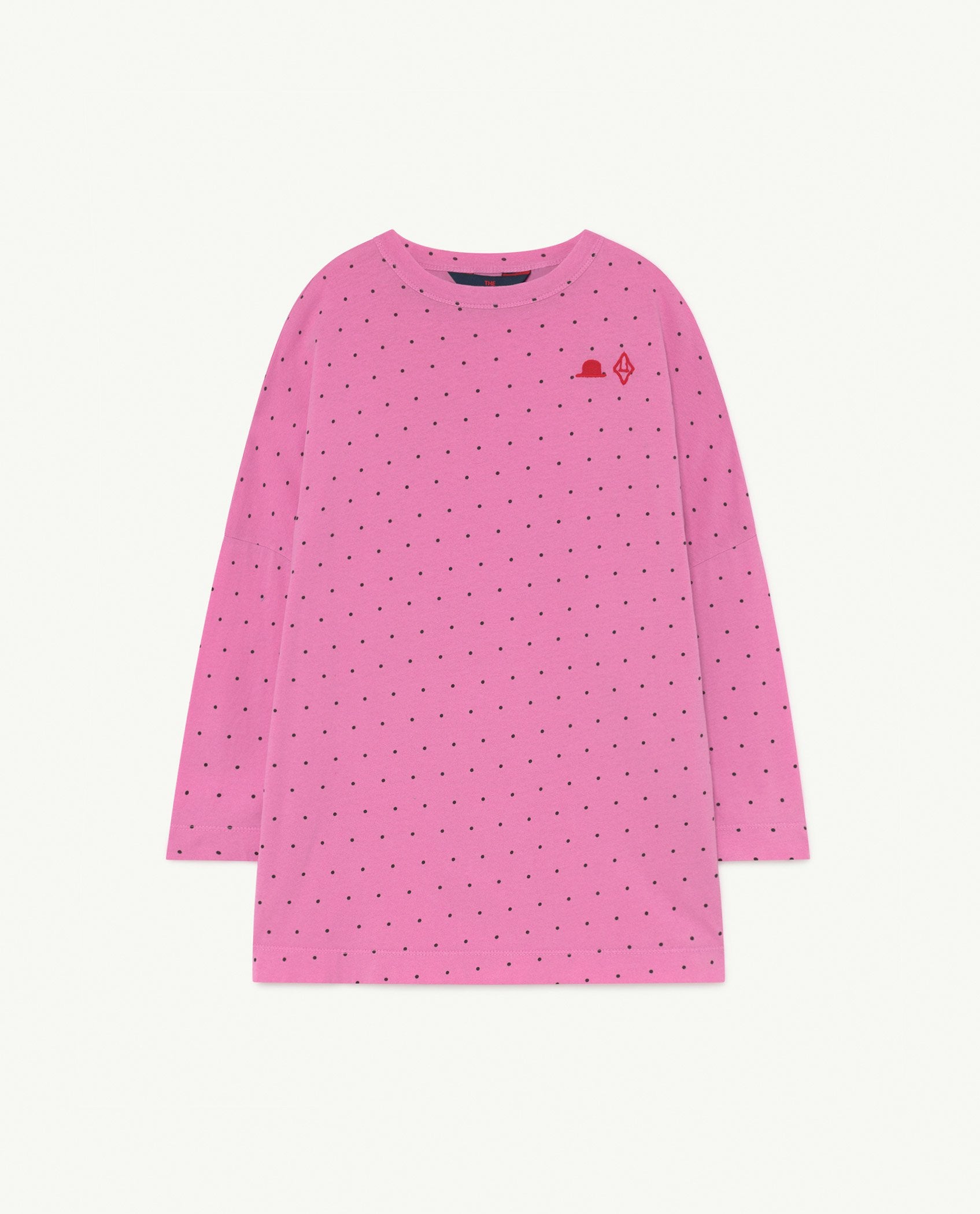The perfect blend of comfortable and cool, 100% cotton dress in a pink dots print.