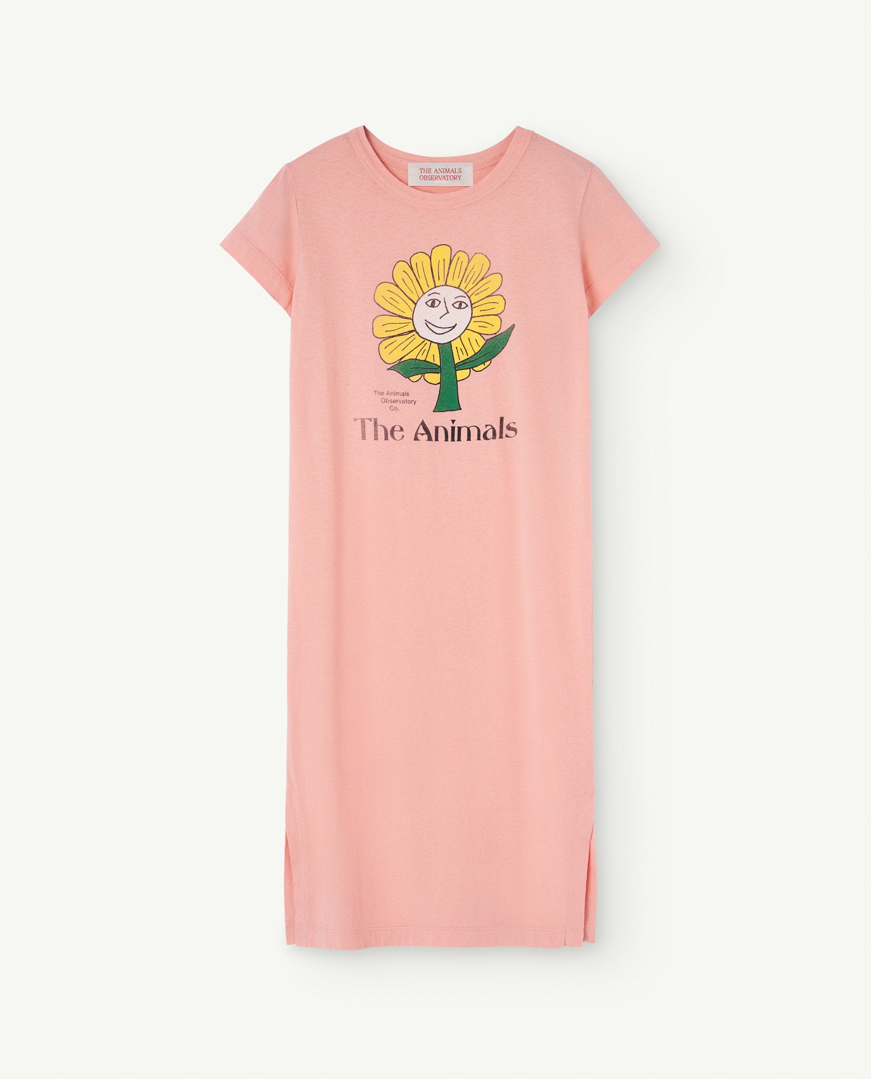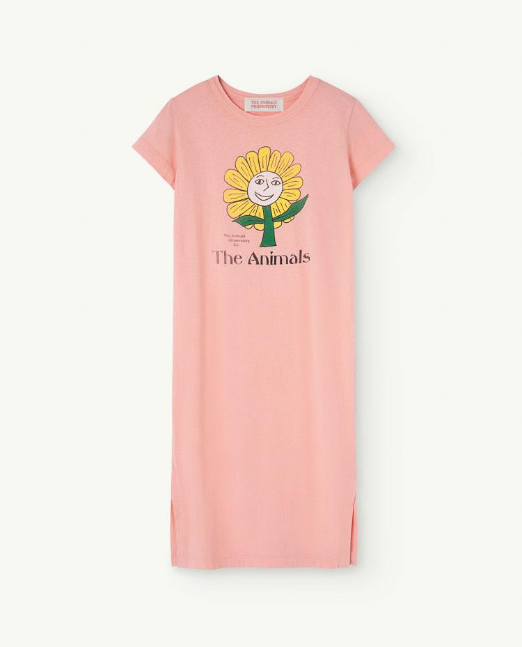 The Pink Gorilla Dress in a regular fit has a sunflower printed over it, which seems to be wanting to meet you. This short-sleeved dress features a round neck and it feels really fresh, thanks to being 100% made of cotton.