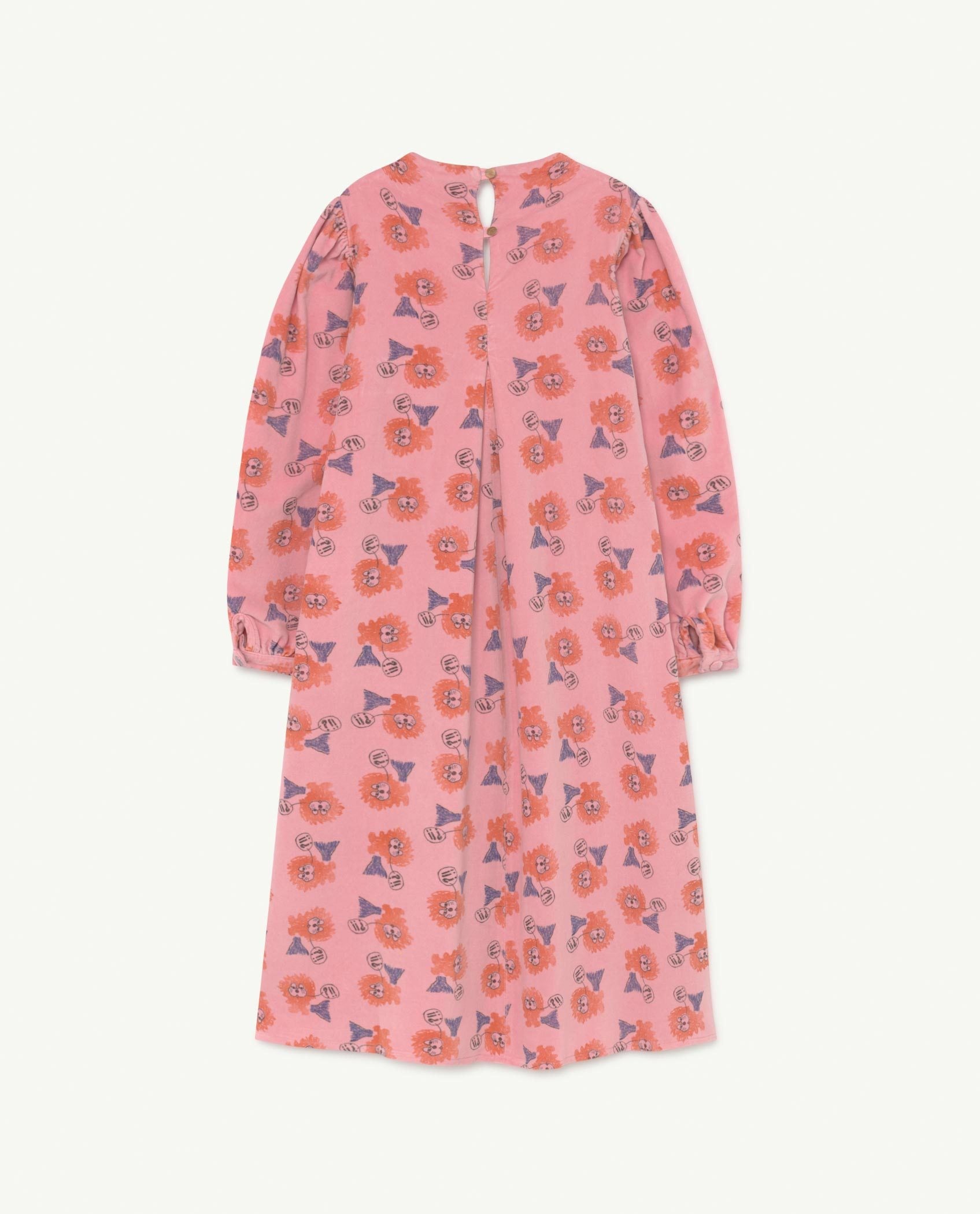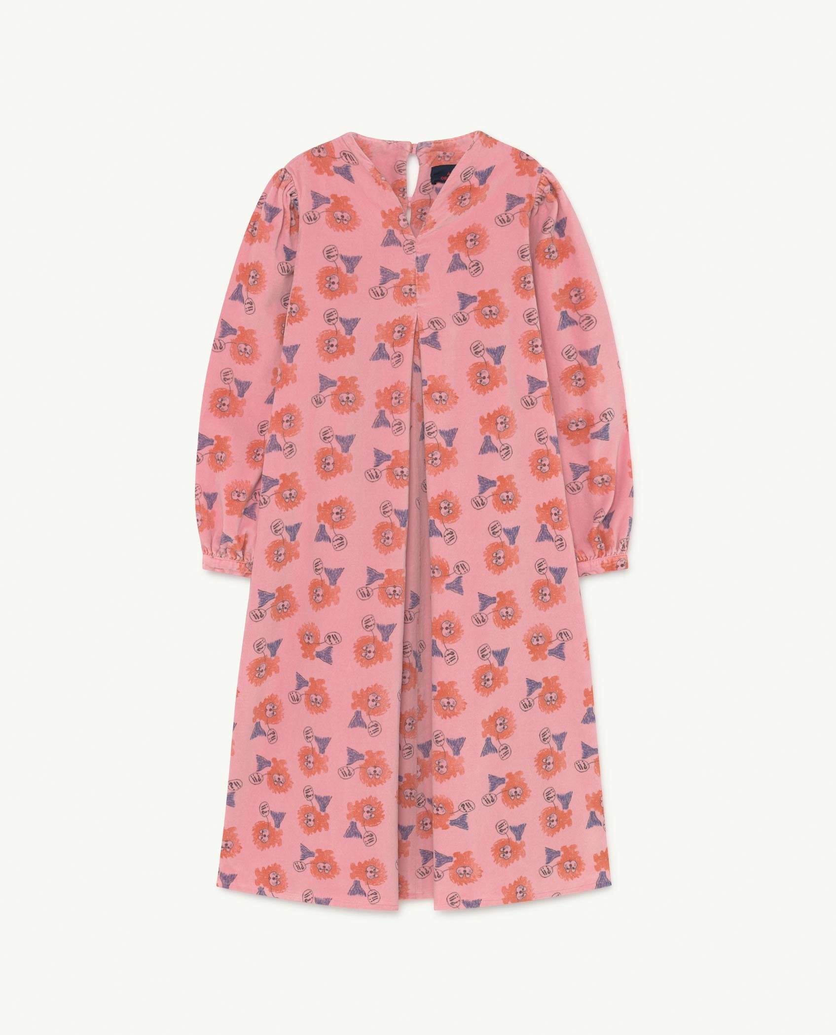 Go wild in this 100% cotton long woven dress in pink with a lion print.
