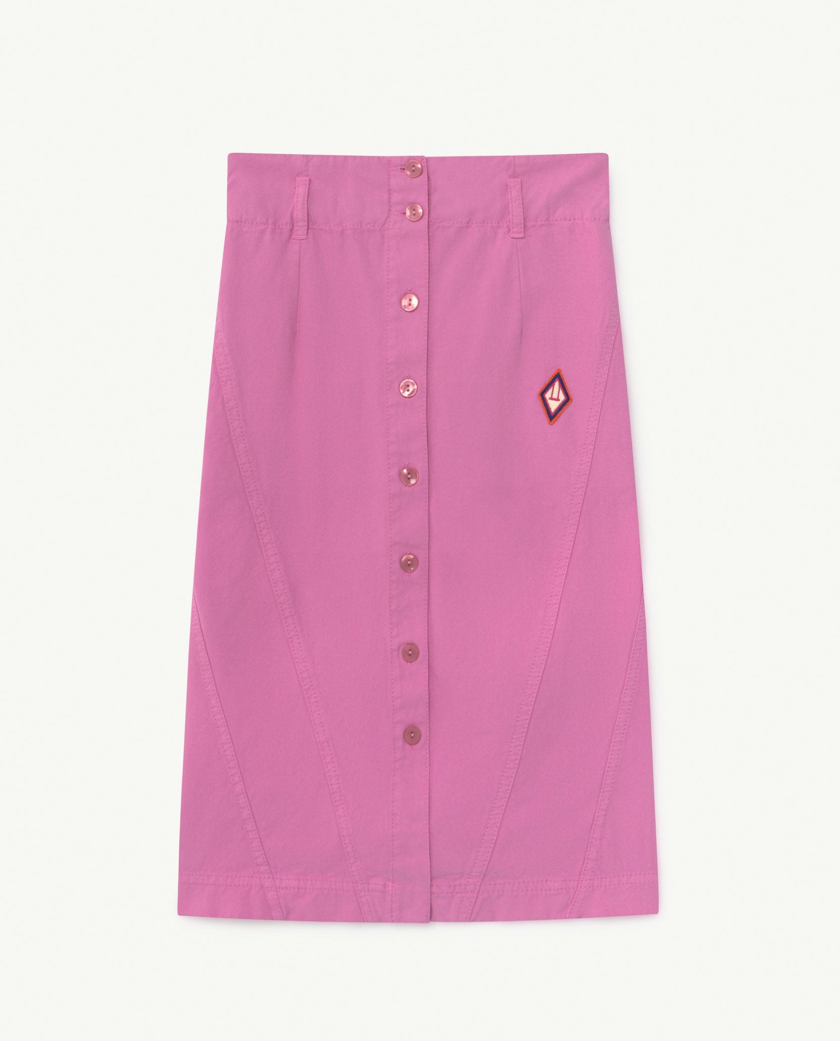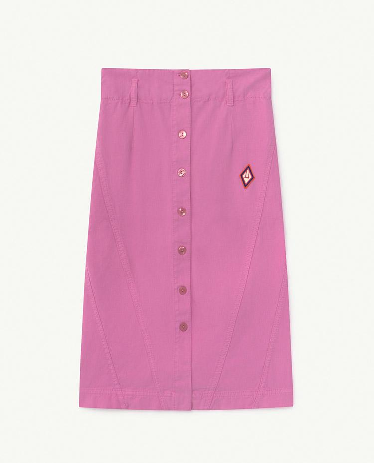 A long, button down, bright pink skirt in 100% cotton, featuring The Animals Observatory logo. Simple and classic.
