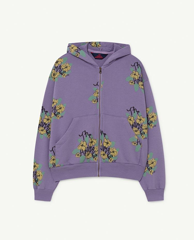 A hooded zip-up sweatshirt with a seriously sporty vibe in purple with a gorgeous flower print.