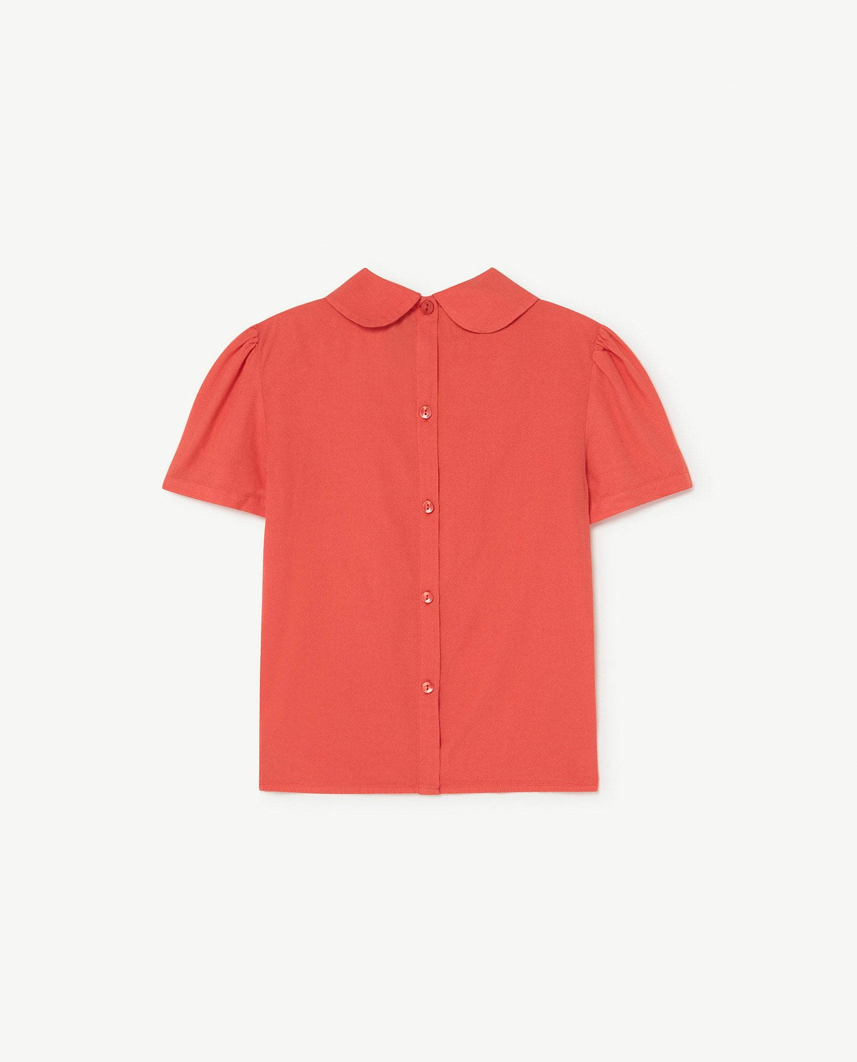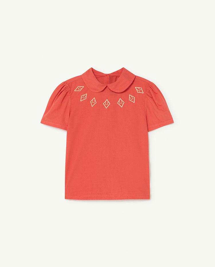 A 100% cotton red blouse with a Peter Pan collar they'll wear day in, day out. Adorned with The Animals Observatory logo around the neckline. Exclusively available on The Animals Observatory online shop.