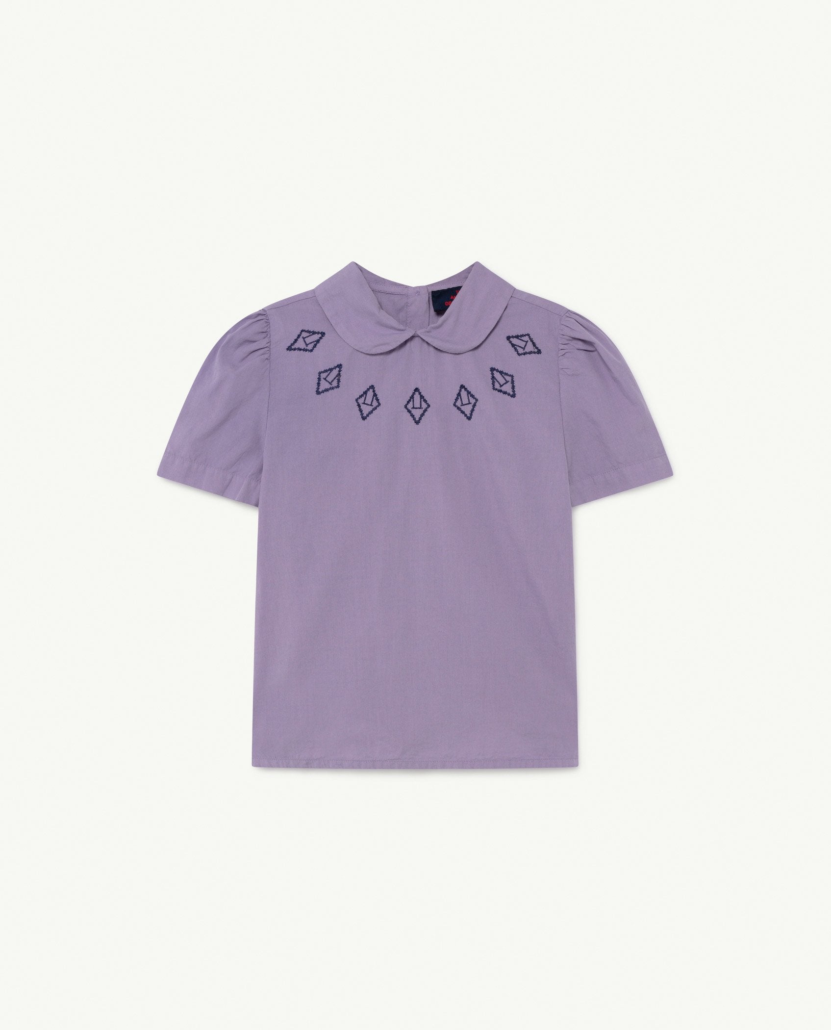 A 100% cotton purple blouse with a Peter Pan collar they'll wear day in, day out. Adorned with The Animals Observatory logo around the neckline.