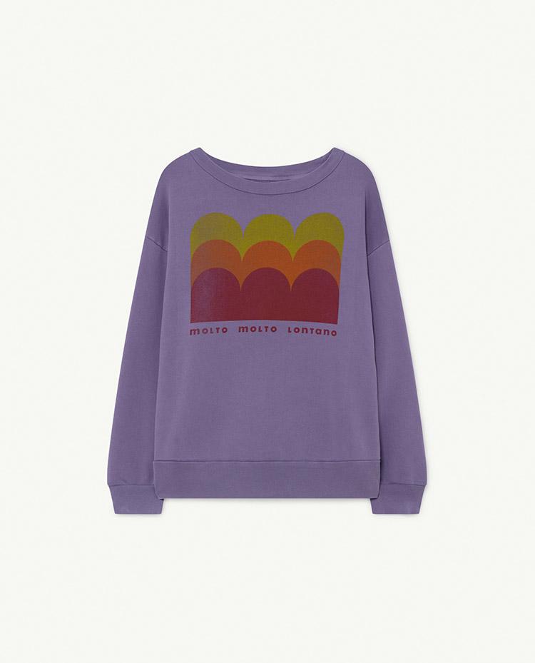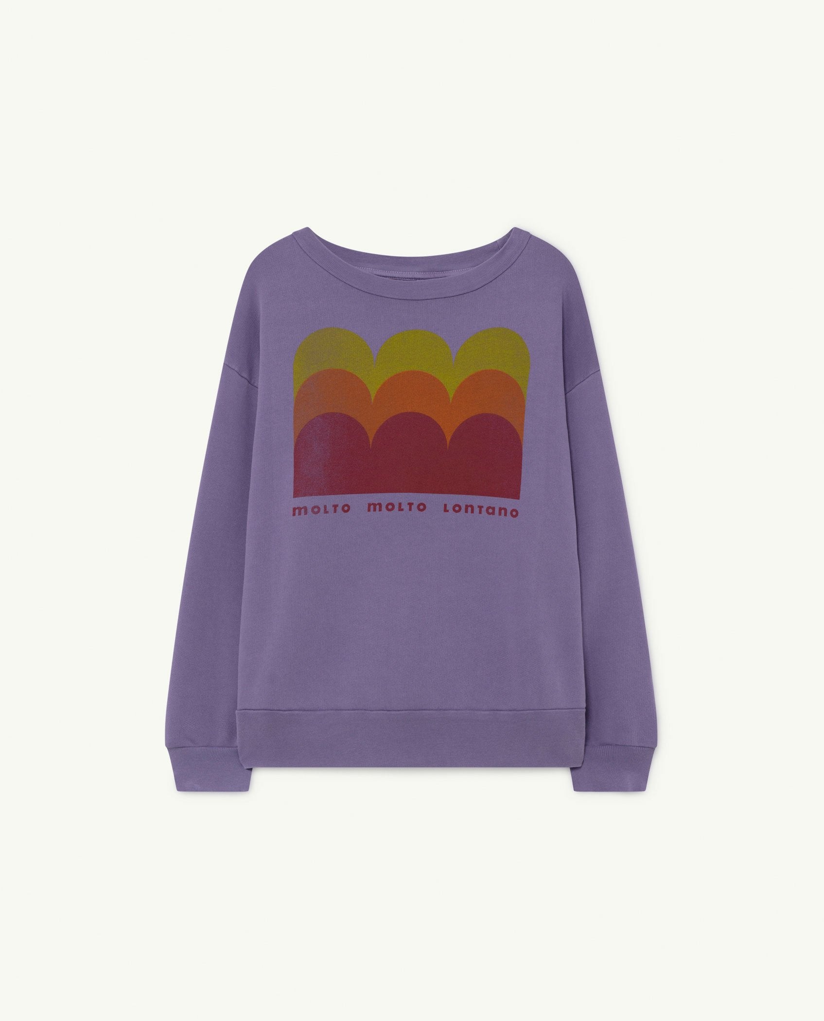 They'll want to wear this loose, comfy sweatshirt everywhere. In purple with a summery motif.