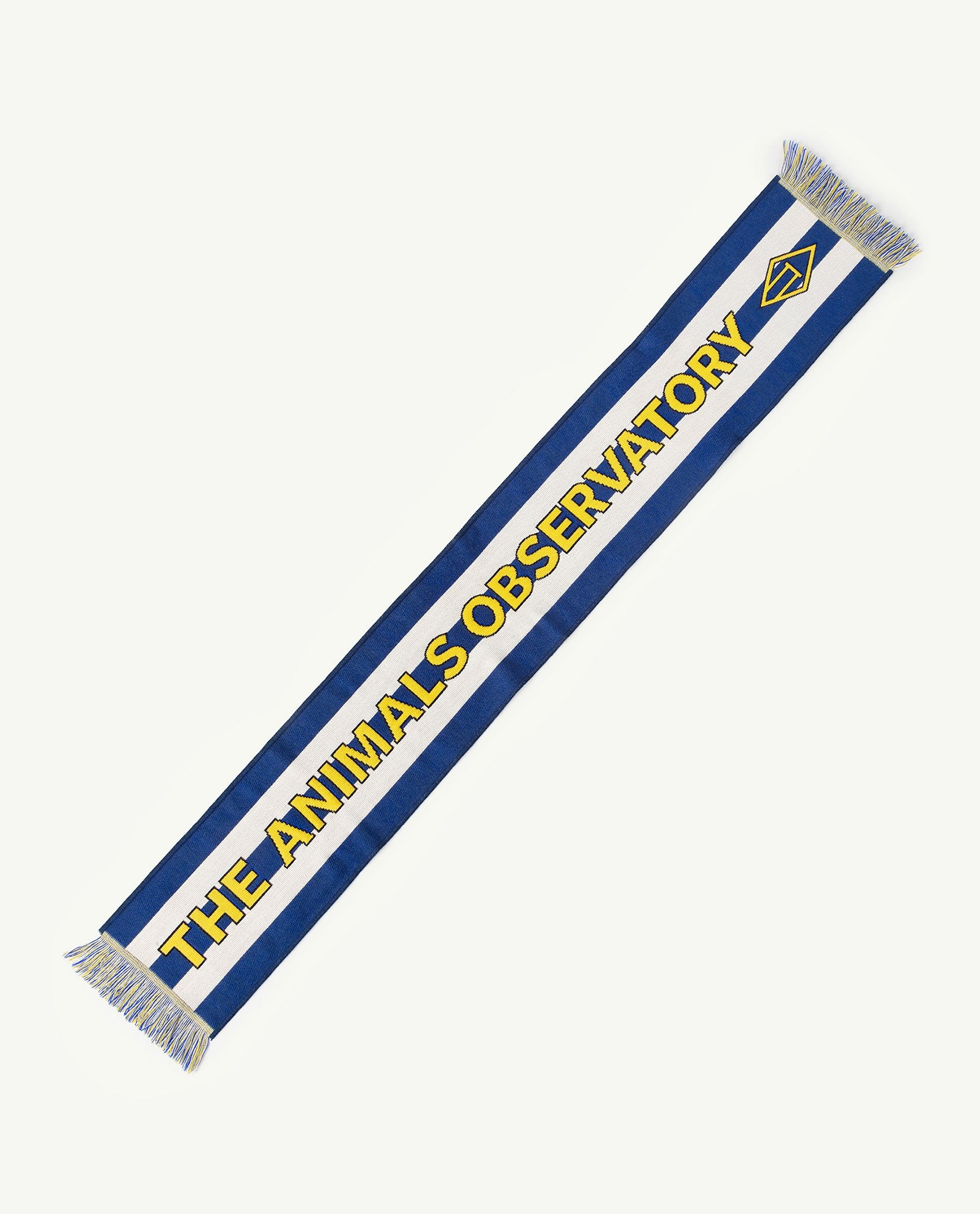 The Raw White Snake Scarf, a soft, cosy scarf to snuggle up in. Featuring stripes, tassels and The Animals Observatory logo.