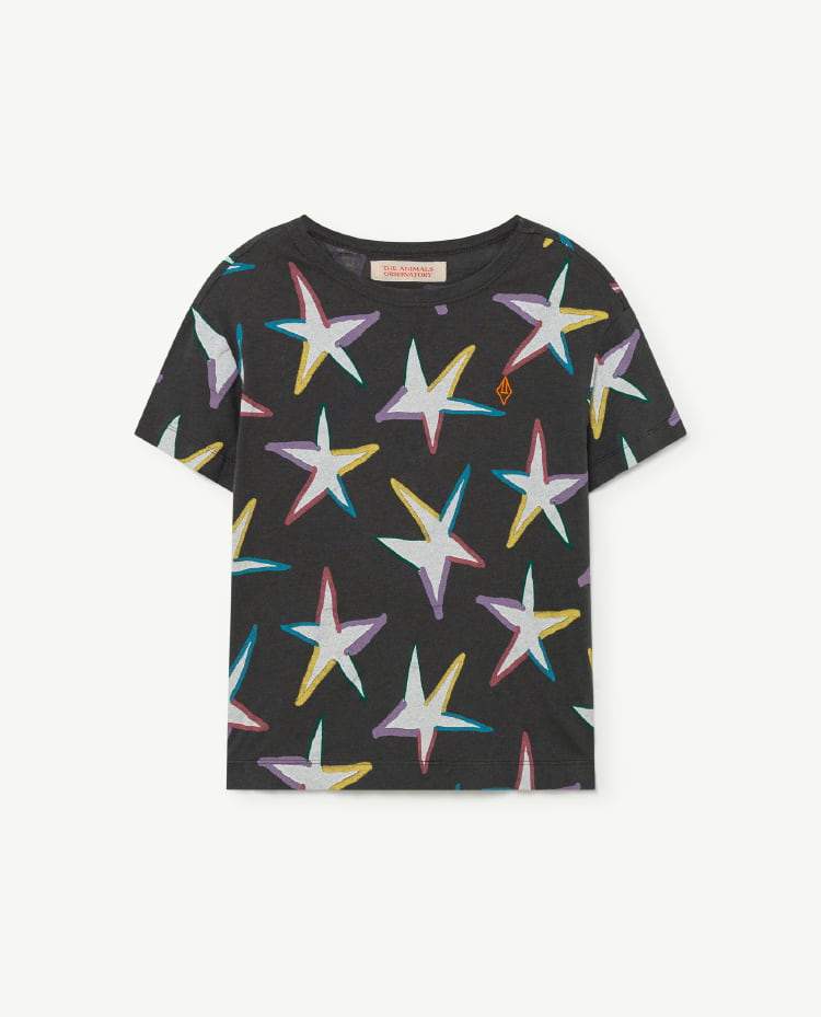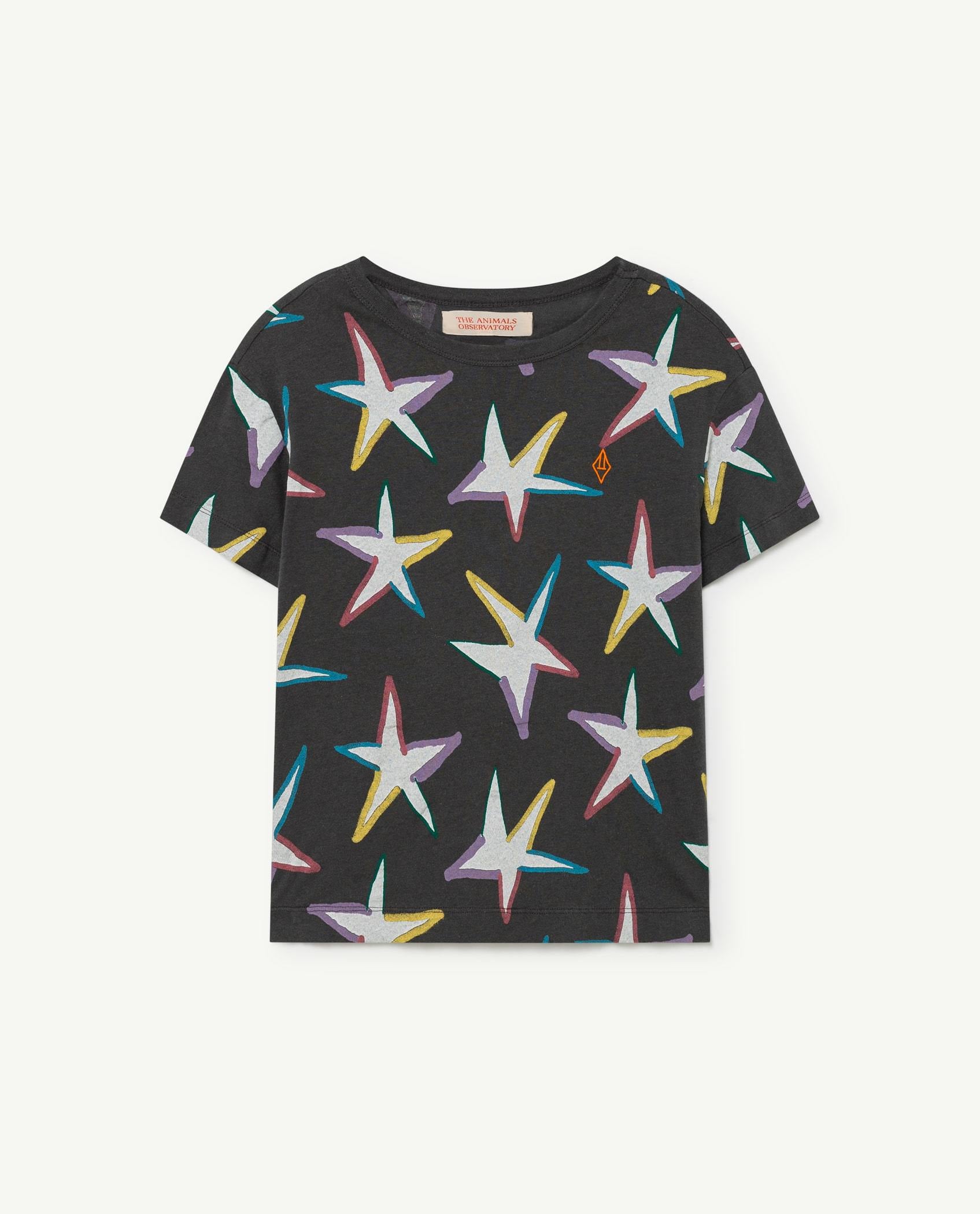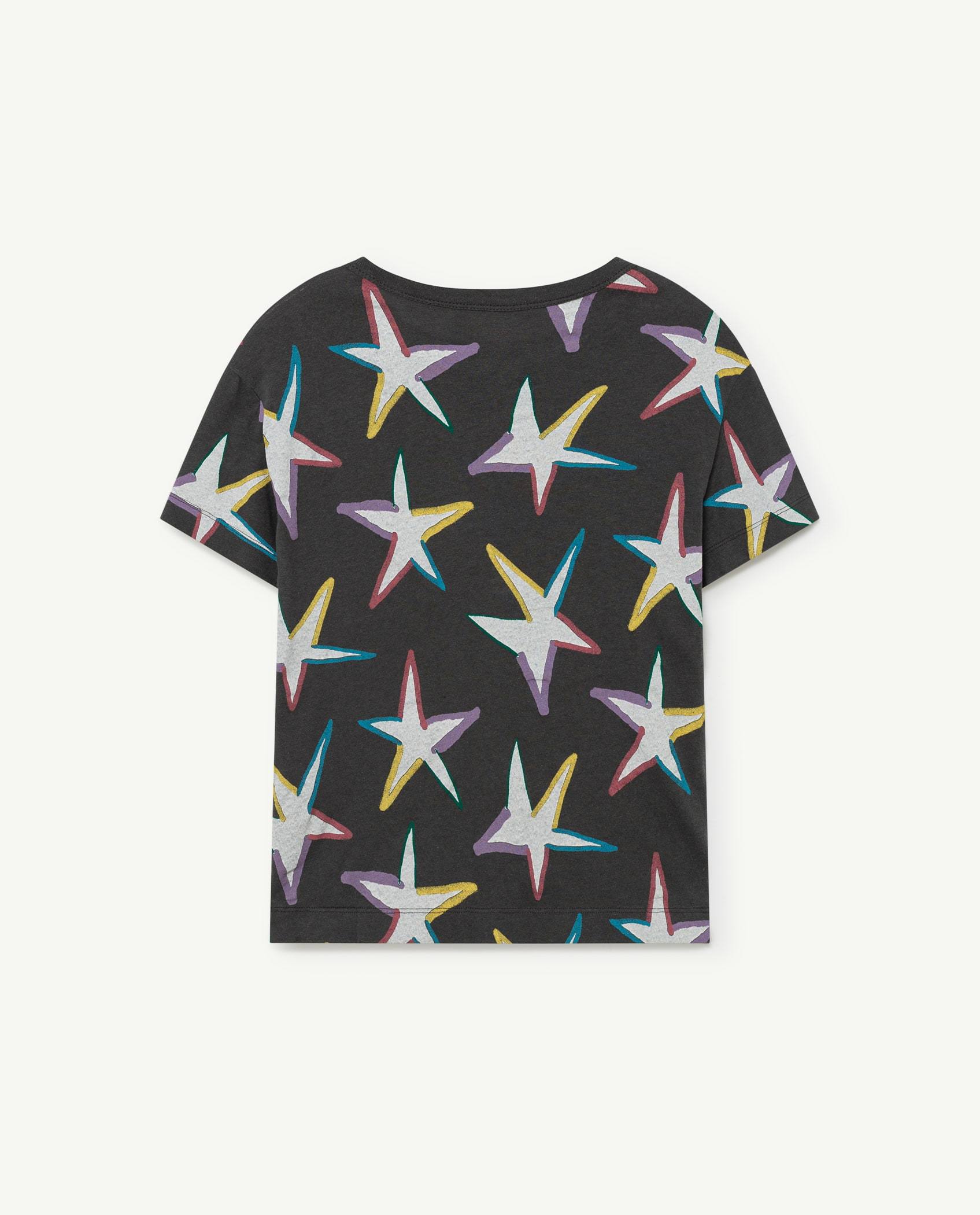 Recycled Black White Stars Rooster T-Shirt, a classic design in soft cotton with a repeated star print. 100% cotton (20% recycled cotton, our own re-worked cotton sourced between Spain and Portugal).