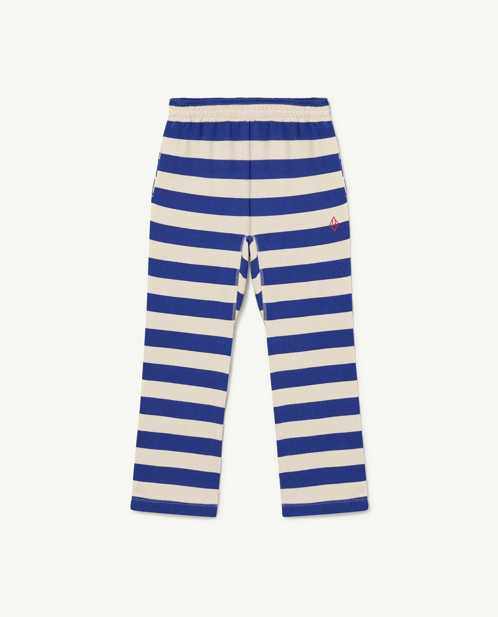 The Recycled Raw White Blue Stripes Camaleon Pants have blue stripes all over them. With an adjustable and elastic waist and fully made with cotton (the 20% of the cotton used it's recycled from previous textiles and fibers and it has been sourced between Spain and Portugal). The pants pockets are made with recycled plush and jersey fabrics.