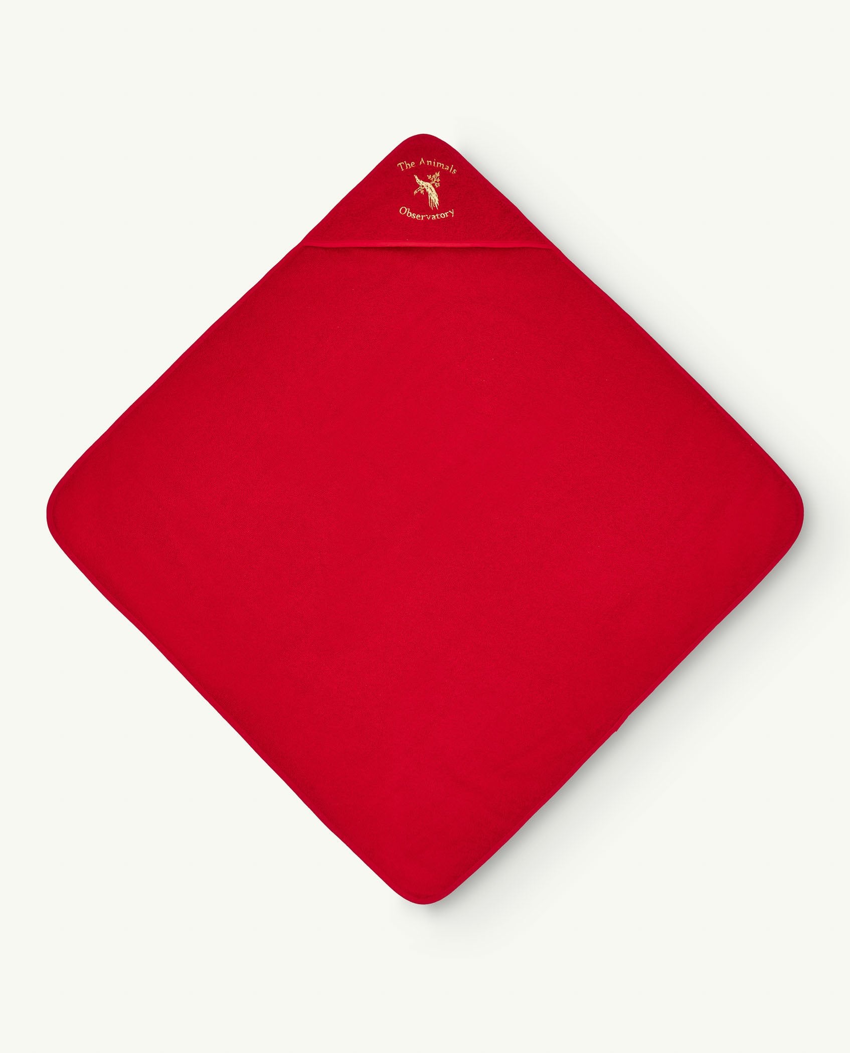 The Red Baby Towel Baby Towel is so soft and fresh, that babies will feel immediately cozy while using it. Besides, it is a towel 100% made of cotton and it features an elegant version of The Animals Observatory logo embroidered in a golden yarn.