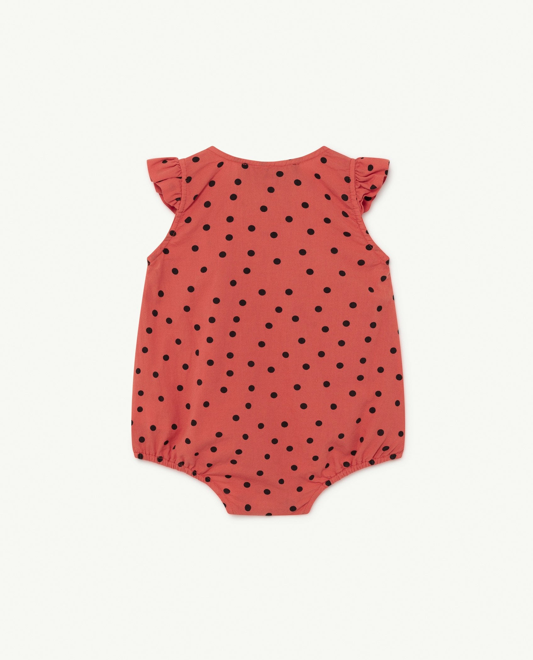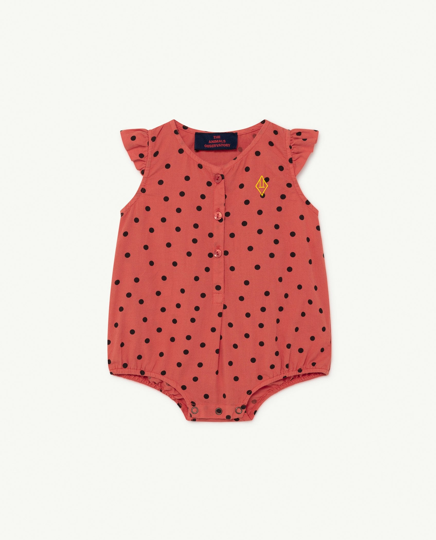 They'll look adorable in this cap-sleeved body in a red polka-dot print and featuring The Animals Observatory logo.