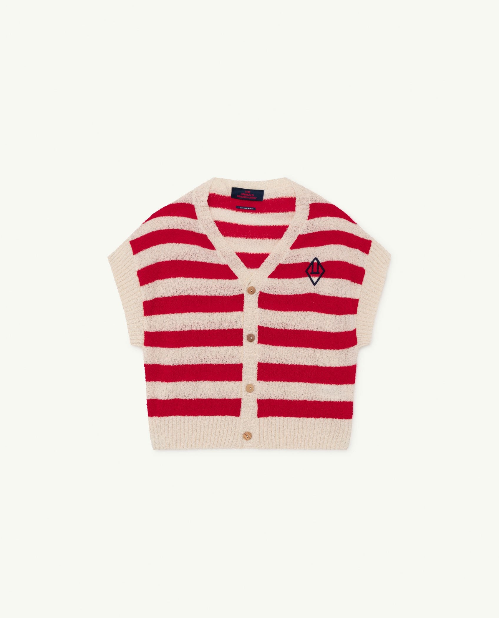 Be bold in this cotton mix vest featuring wide red and white stripes and The Animals Observatory logo.