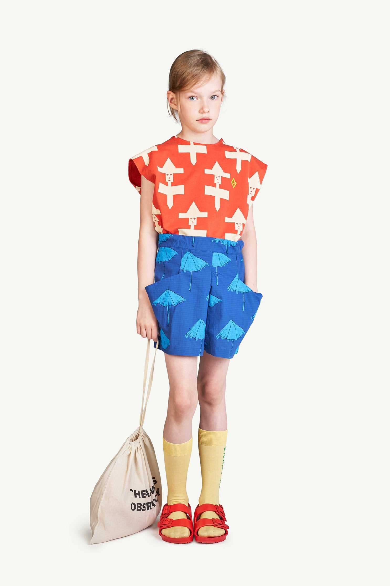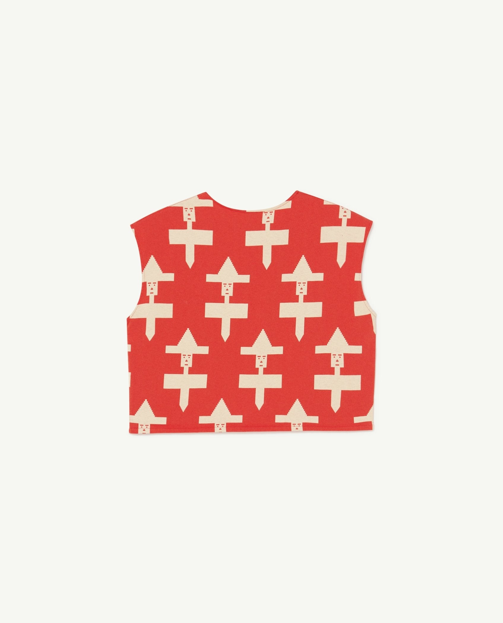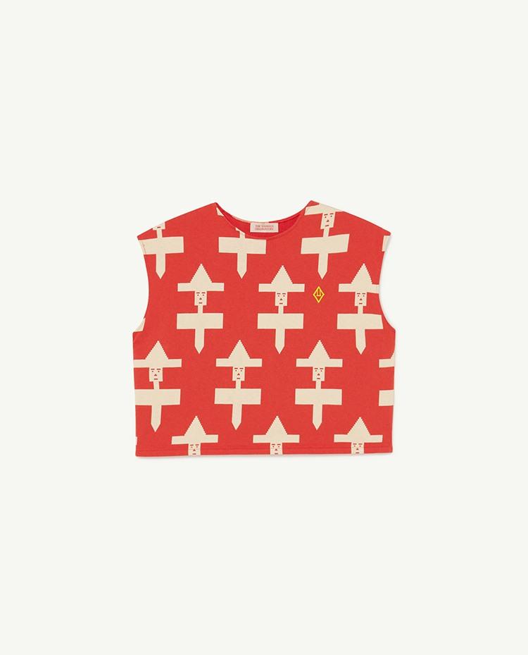 The Red Prawn T-Shirt features a geometric figure print. It has cropped sleeves, a round neck and it's fully made of cotton. The model's height is 130 cm and is wearing size 8 years.