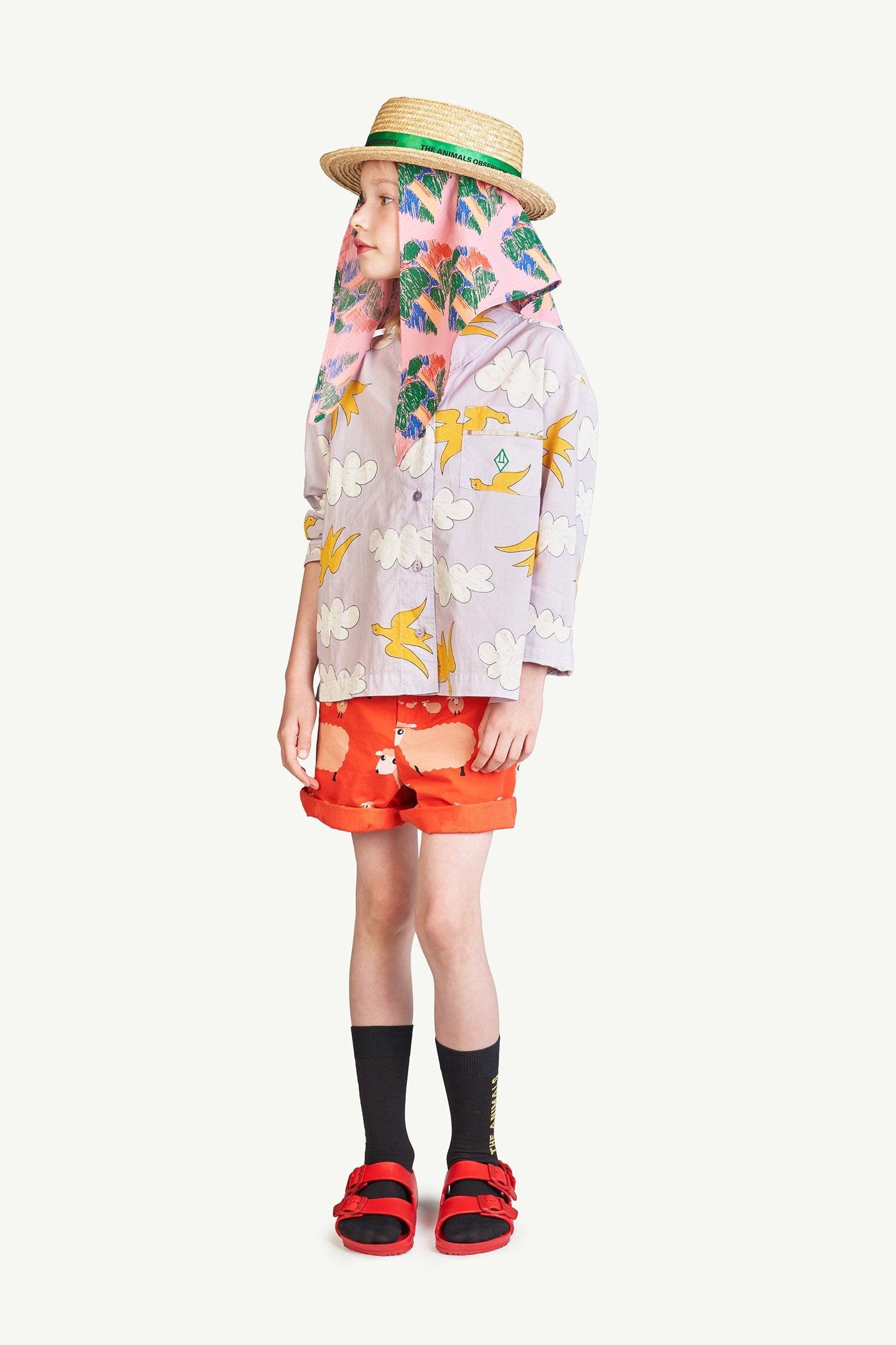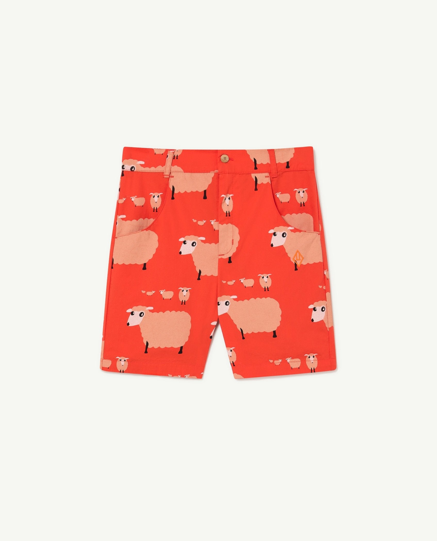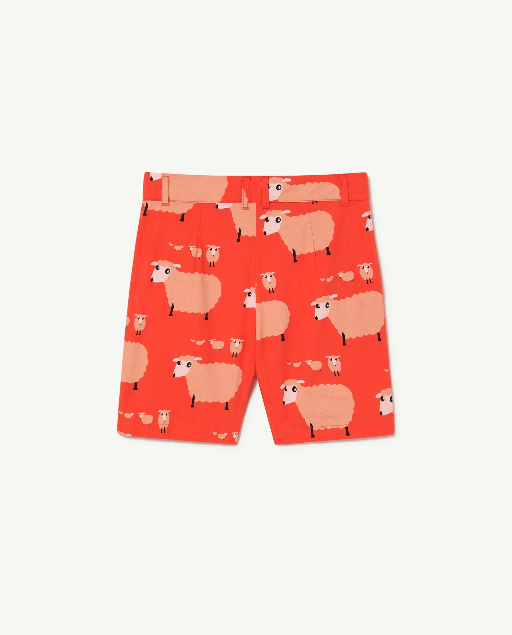 The Red Sheeps Pig Pants are a pair of bermuda short pants with a belt loop and two side pockets. The model's height is 130 cm and is wearing size 8 years.
