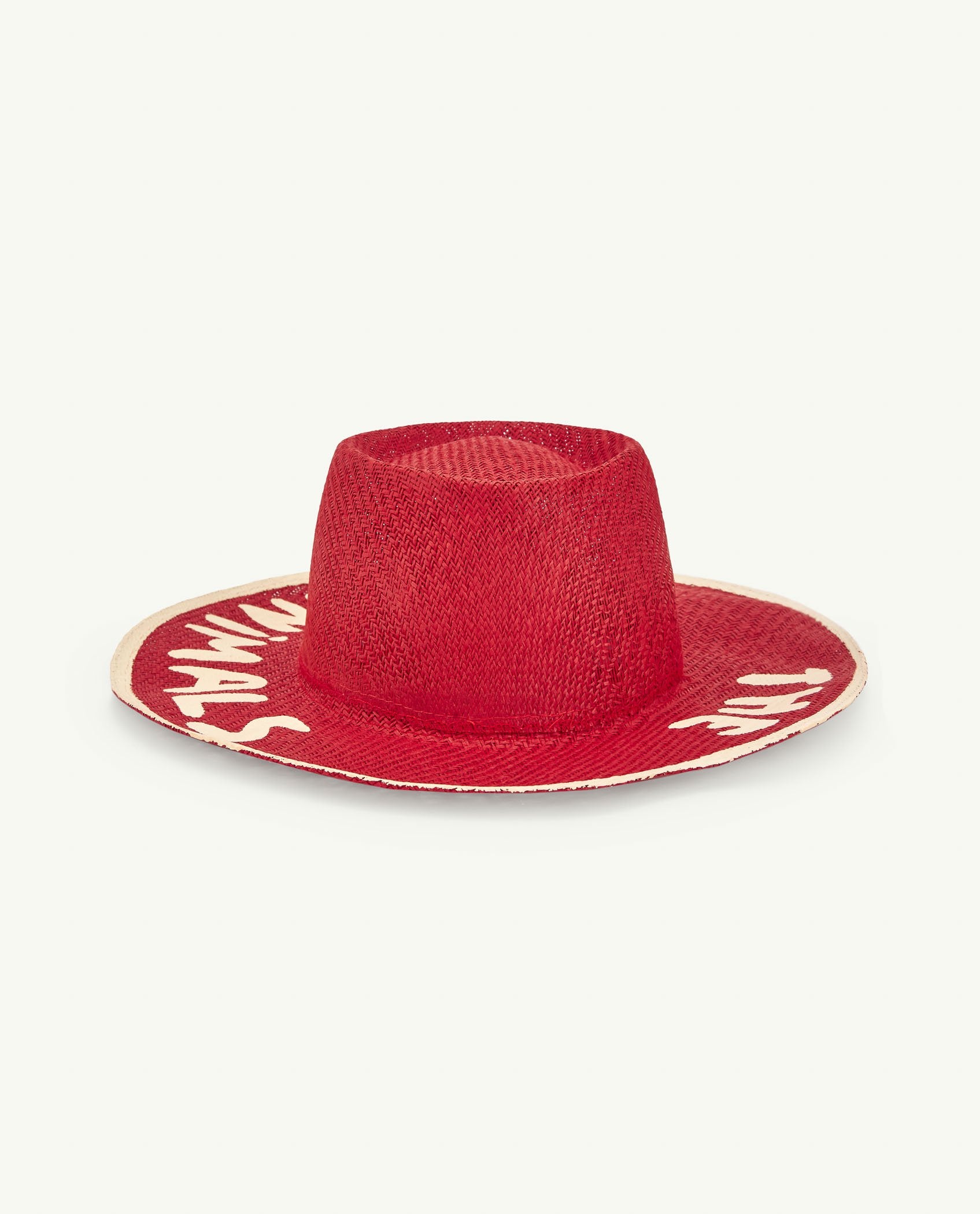 The Red Straw Hat is an adjustable hat that they will be able to shape like a fedora or even like a venetian hat. It includes "The Animals" lettering as if it was freshly painted on its brim.