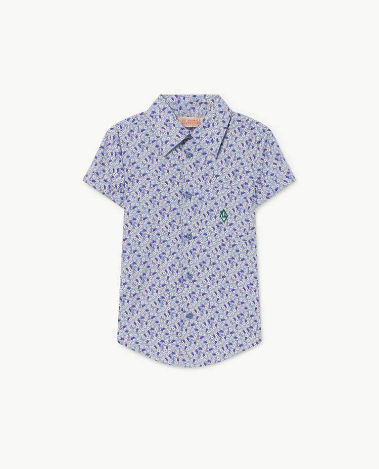 The Blue Kangaroo Kids regular fit Shirt has a dots pattern print all over. With a front side pocket and The Animals Observatory logo. This piece is for any day of the week. Only available in our online store. The model's height is 129 cm and is wearing size 8 years.