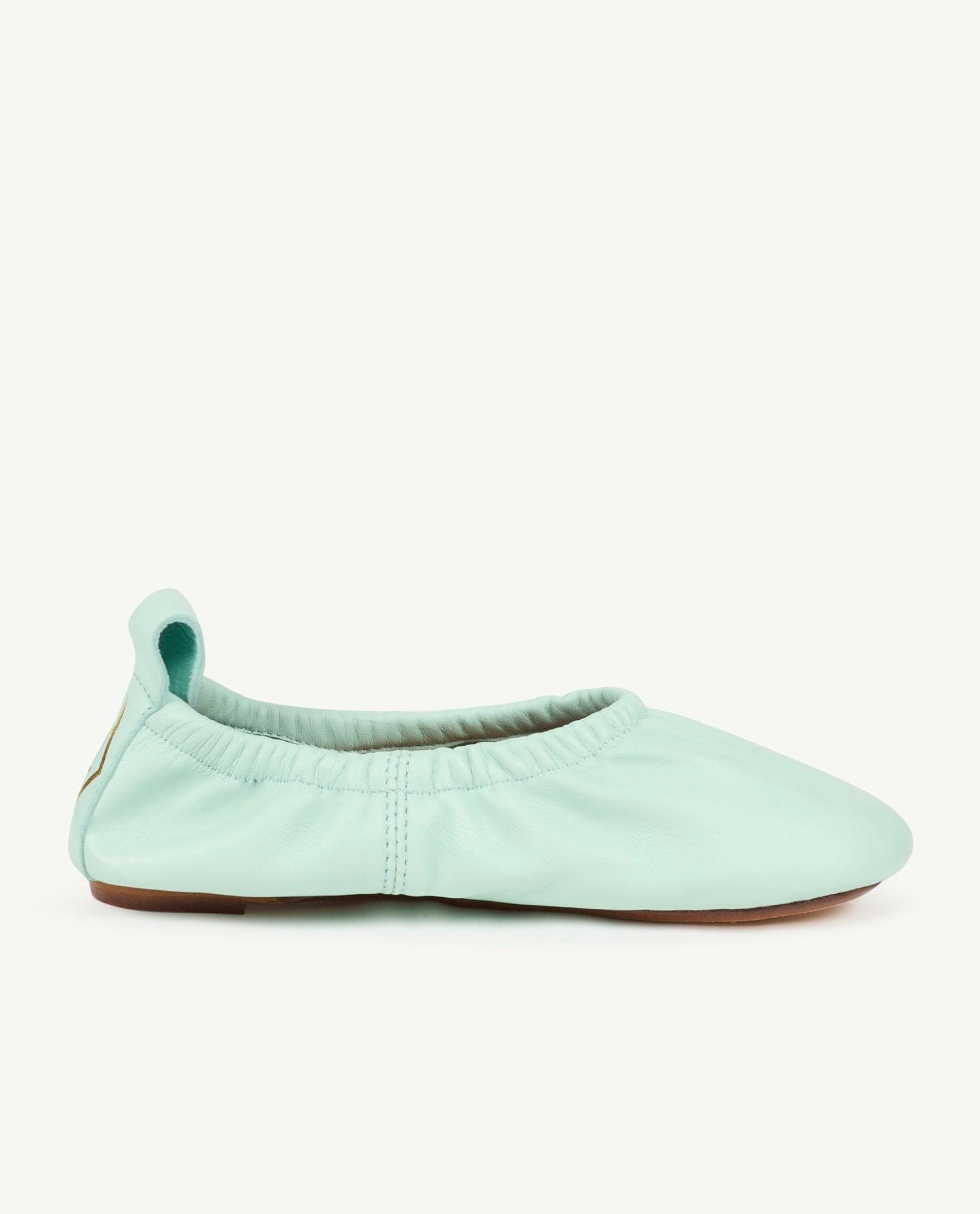 The Mint Donkey Kids Shoes are ballet flat shoes. Leather made and light to wear. With a very thin heel or the appearance of no heel at all. Classic and elegant.
