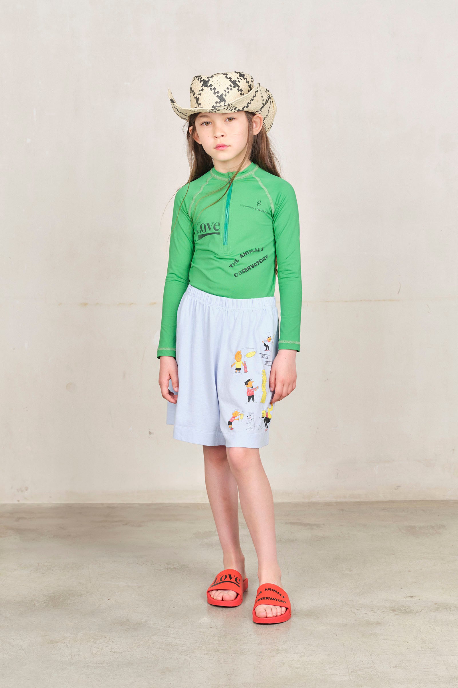 Bermuda shorts with comic strip-inspired drawings. Soft, whimsical, great for a playful touch.
