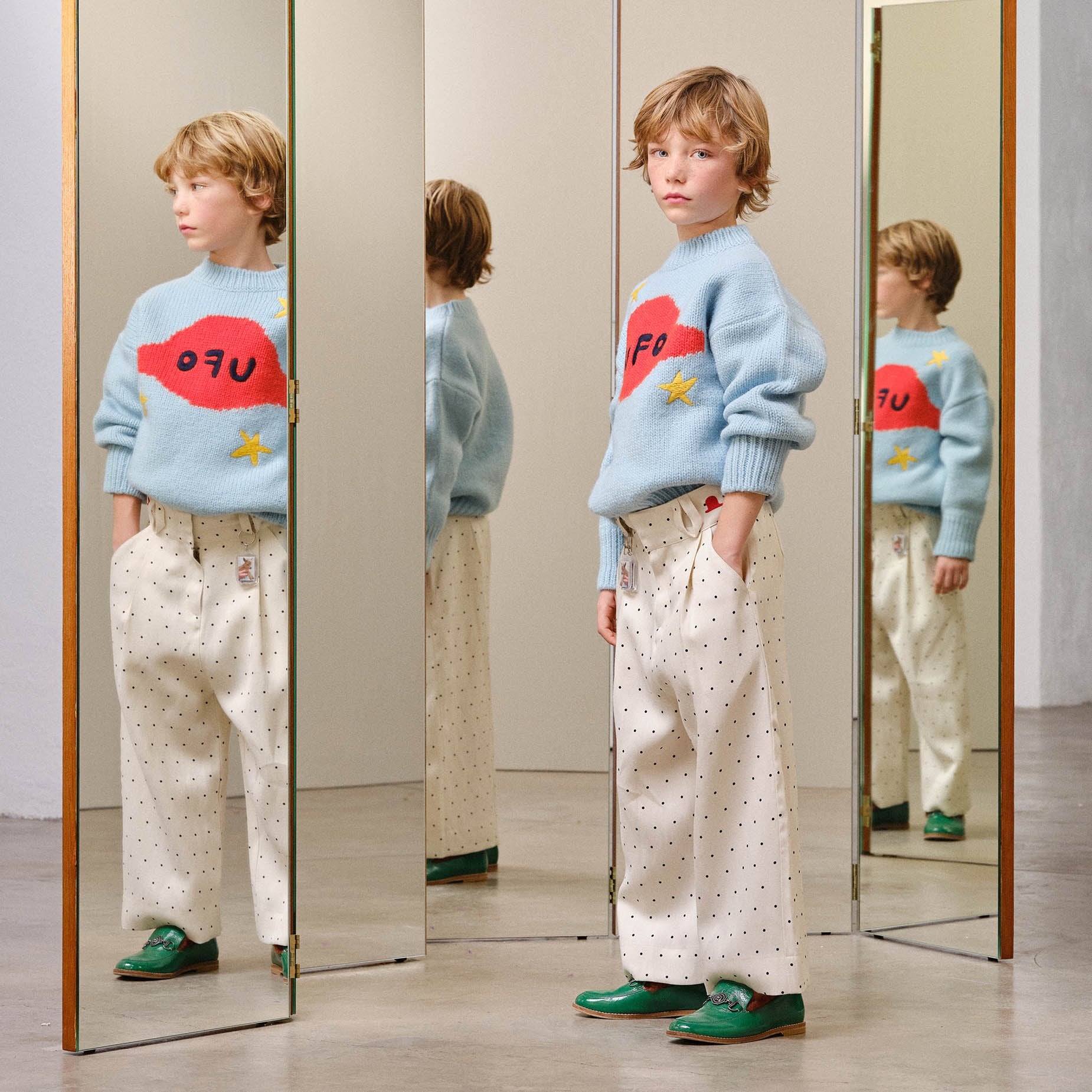 An adorable, cosy way to stay warm, this knit in the softest, 100% organic wool has a fun design that's out of this world.