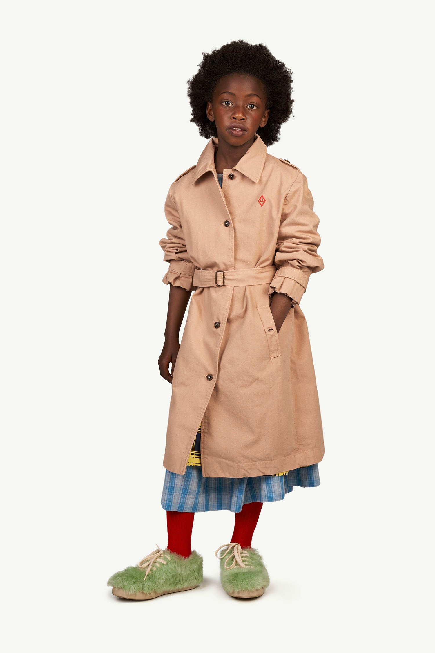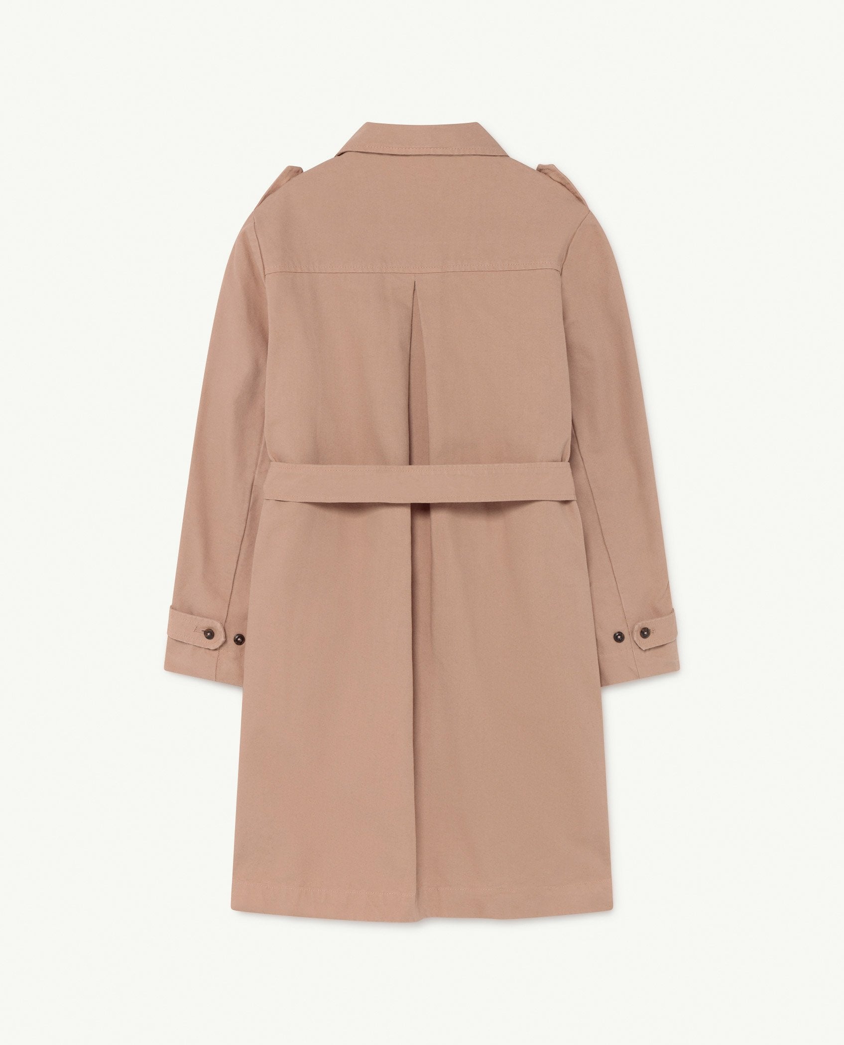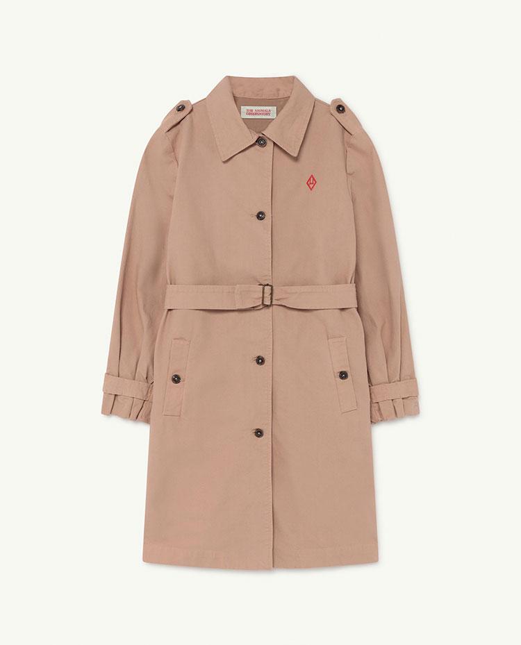 Soft Brown Logo Mastiff Jacket, a 100% cotton trench coat in an irresistible shade of soft brown is perfect for moody Fall days. Featuring a red The Animals Observatory logo on the breast. Exclusively available on The Animals Observatory online shop.