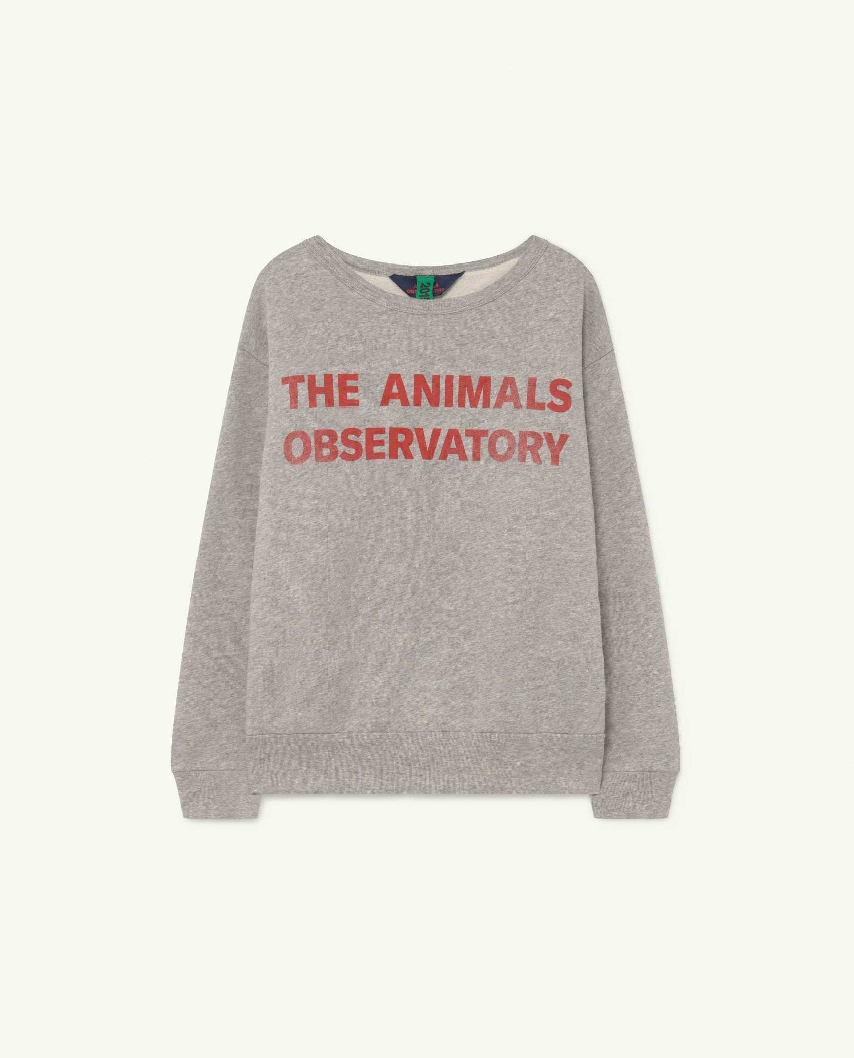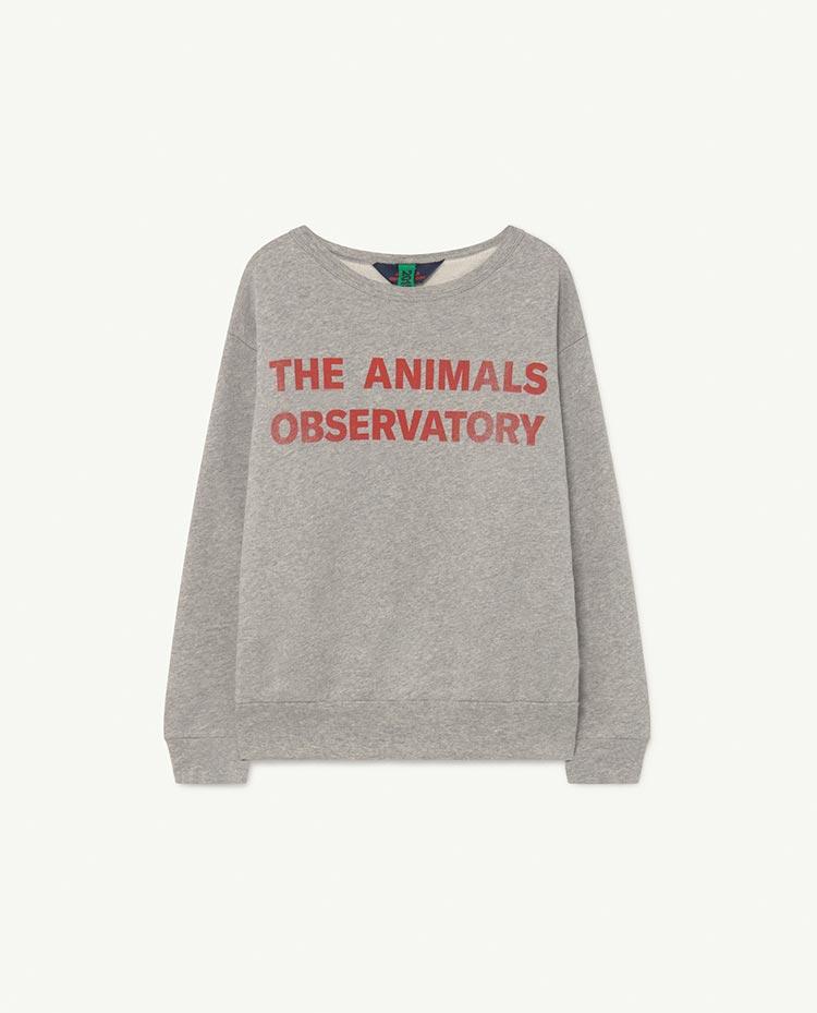 The Soft Grey Bear Sweatshirt has a ribbed neckline and cuffed sleeves featuring The Animals Observatory logo on the front. An ideal transitional piece for autumn. Part of the 2015 clothing line, named after the year we were born. Inspired by simplicity and elegance, to be worn by kids and adults.