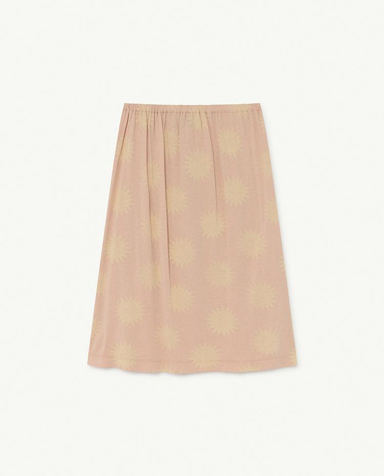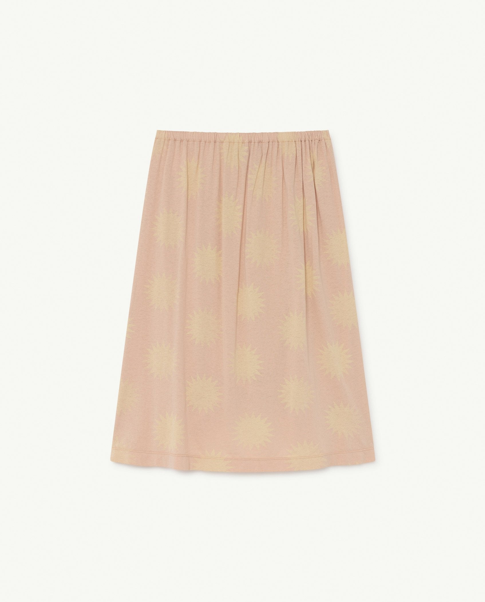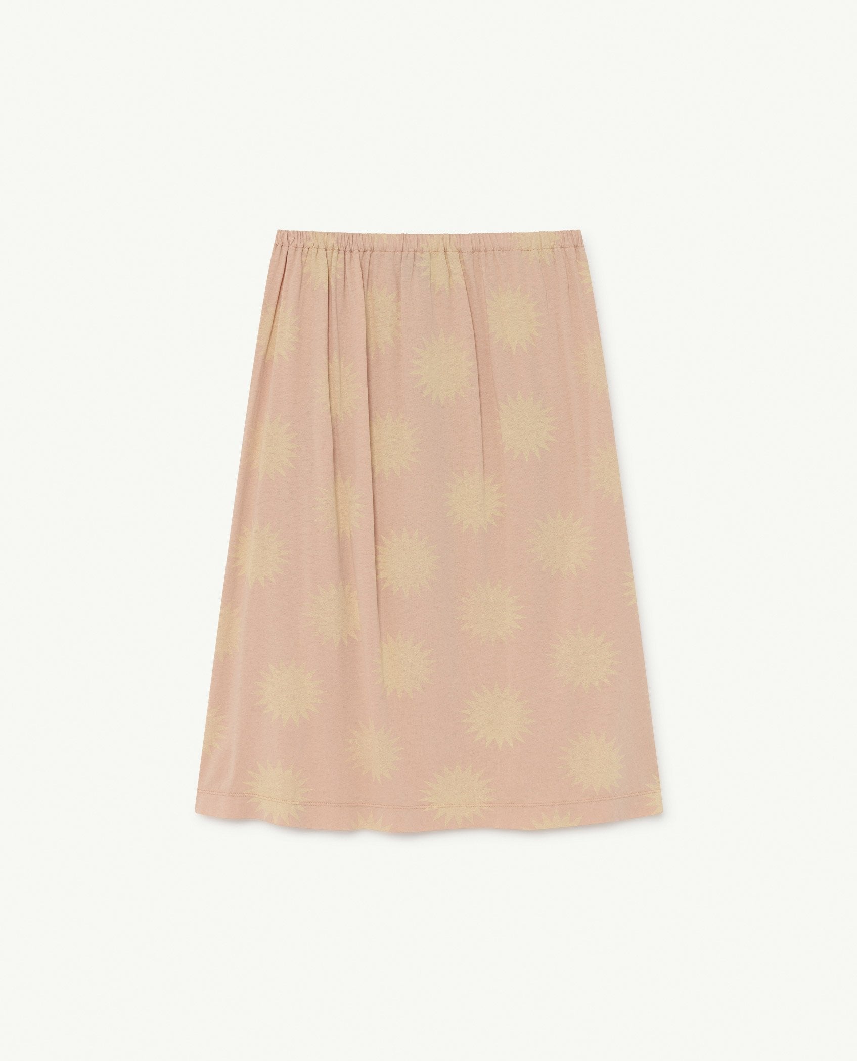 Long and loose, they'll love wearing this cotton Soft Pink Suns Ladybug Skirt in soft pink with a gorgeous yellow suns pattern.