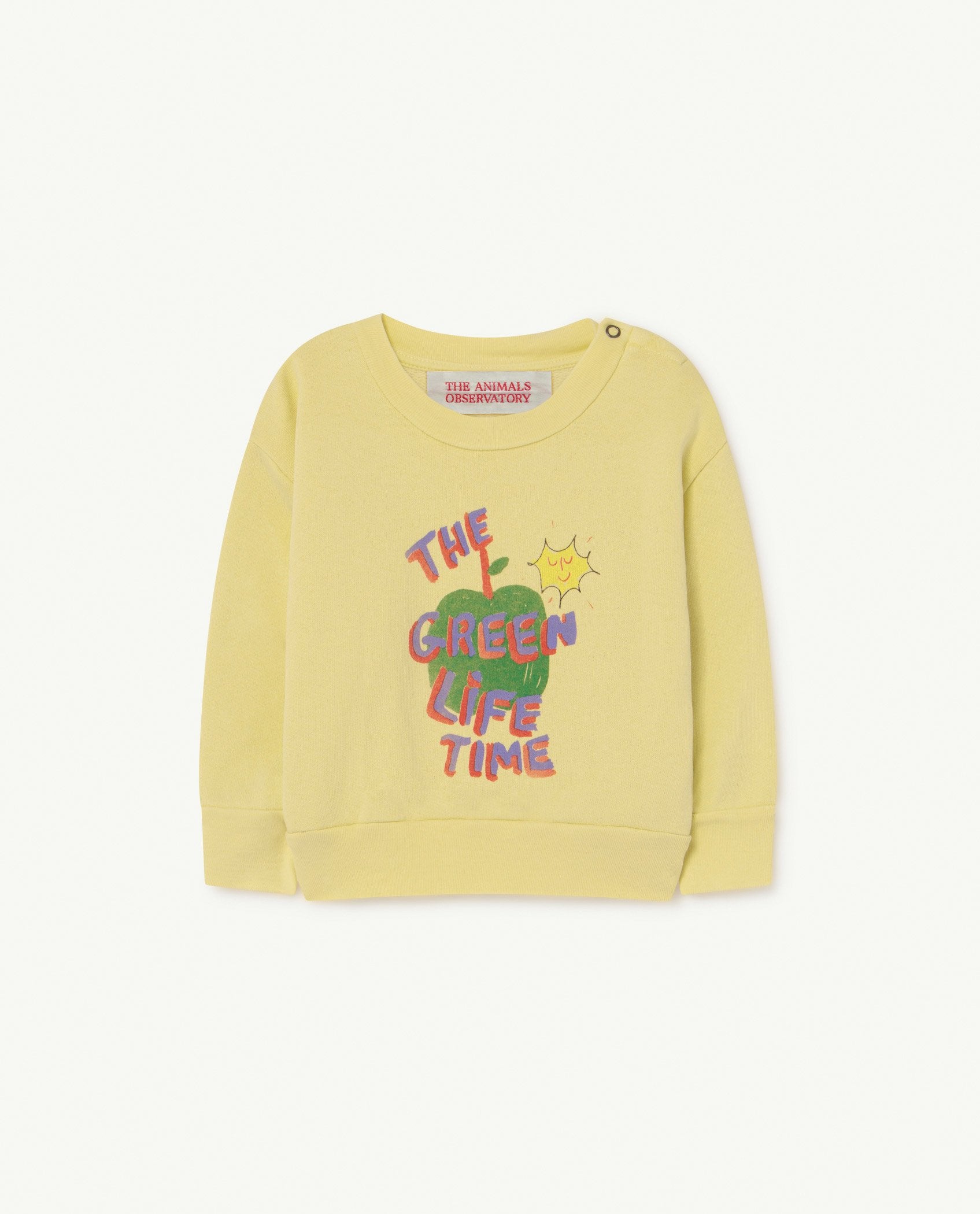 The Soft Yellow Apple Bear Baby Sweatshirt is a comfy sweatshirt in a slouchy fit featuring a graphic, illustration on the front. An ideal transitional piece for their wardrobe. Exclusively available on The Animals Observatory online shop.