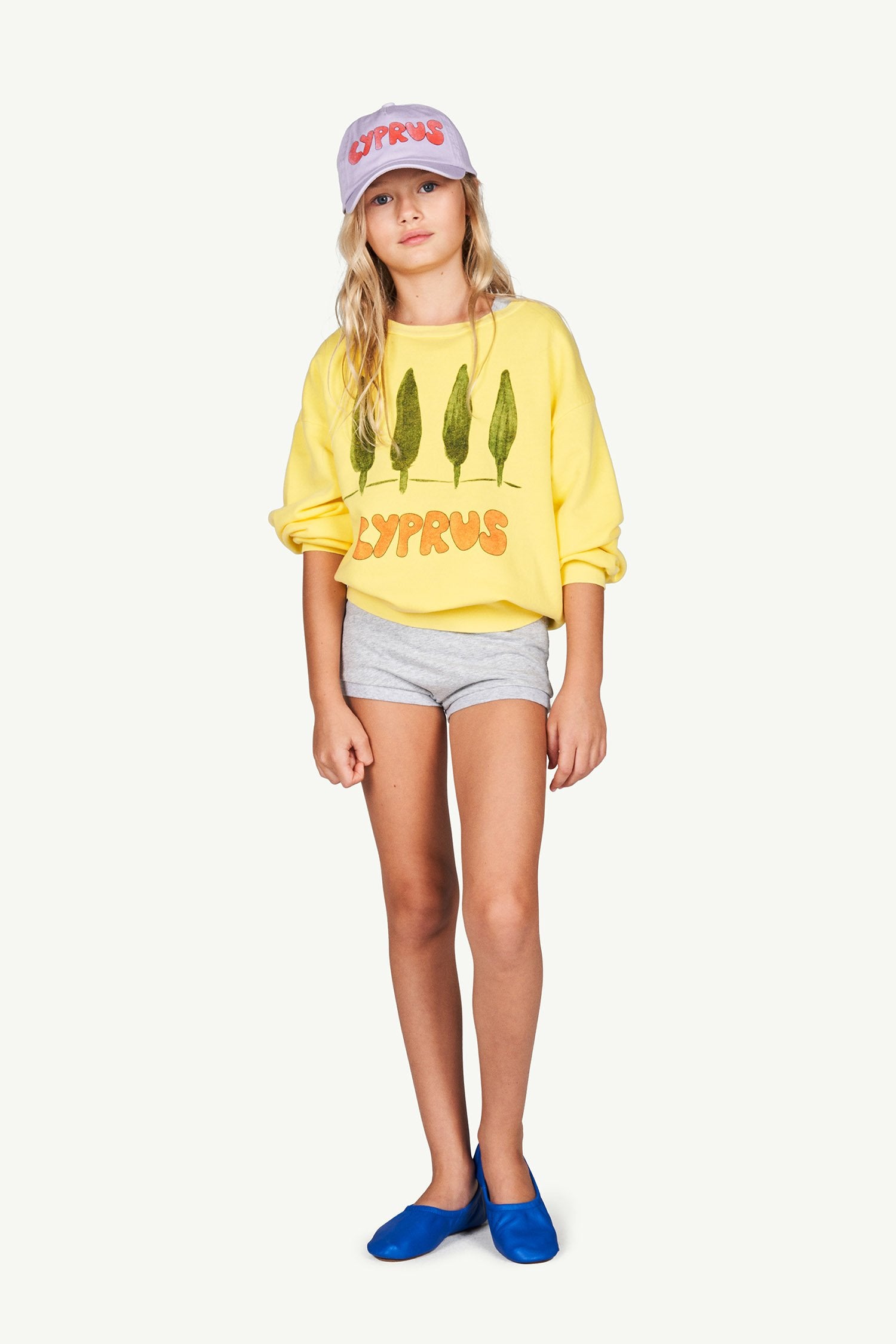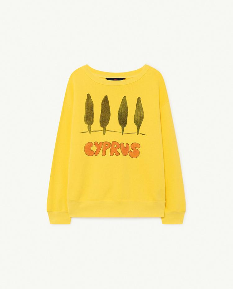They'll want to wear this loose, comfy sweatshirt everywhere. In yellow with a Cyprus motif.