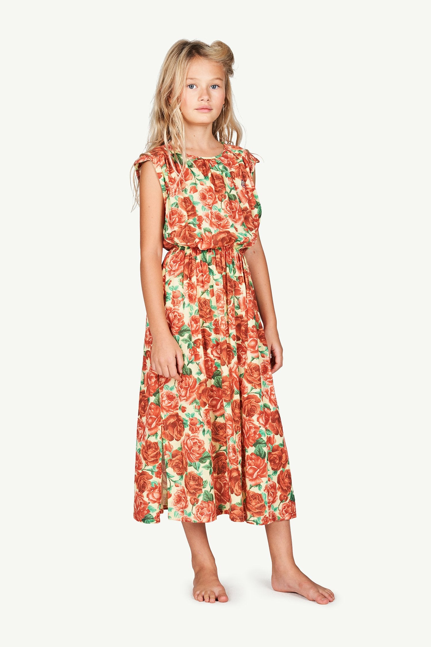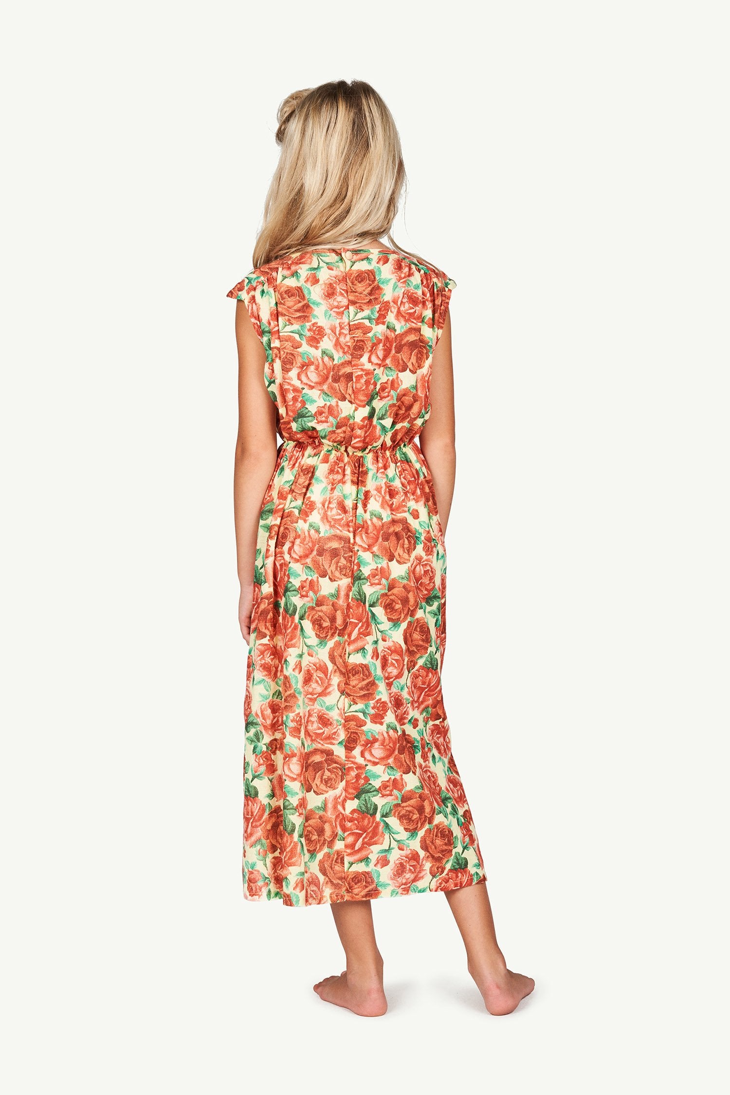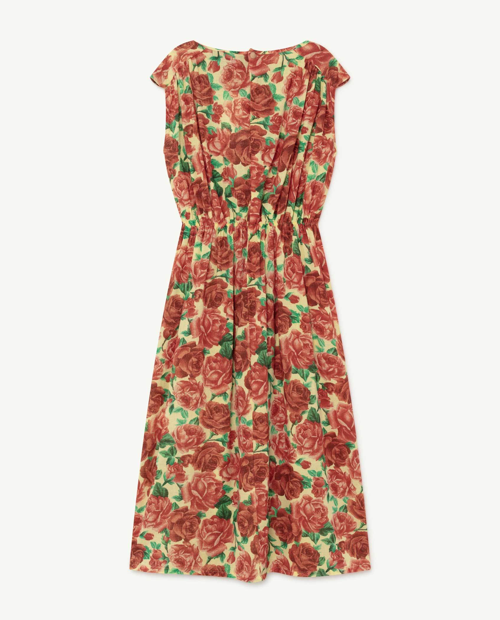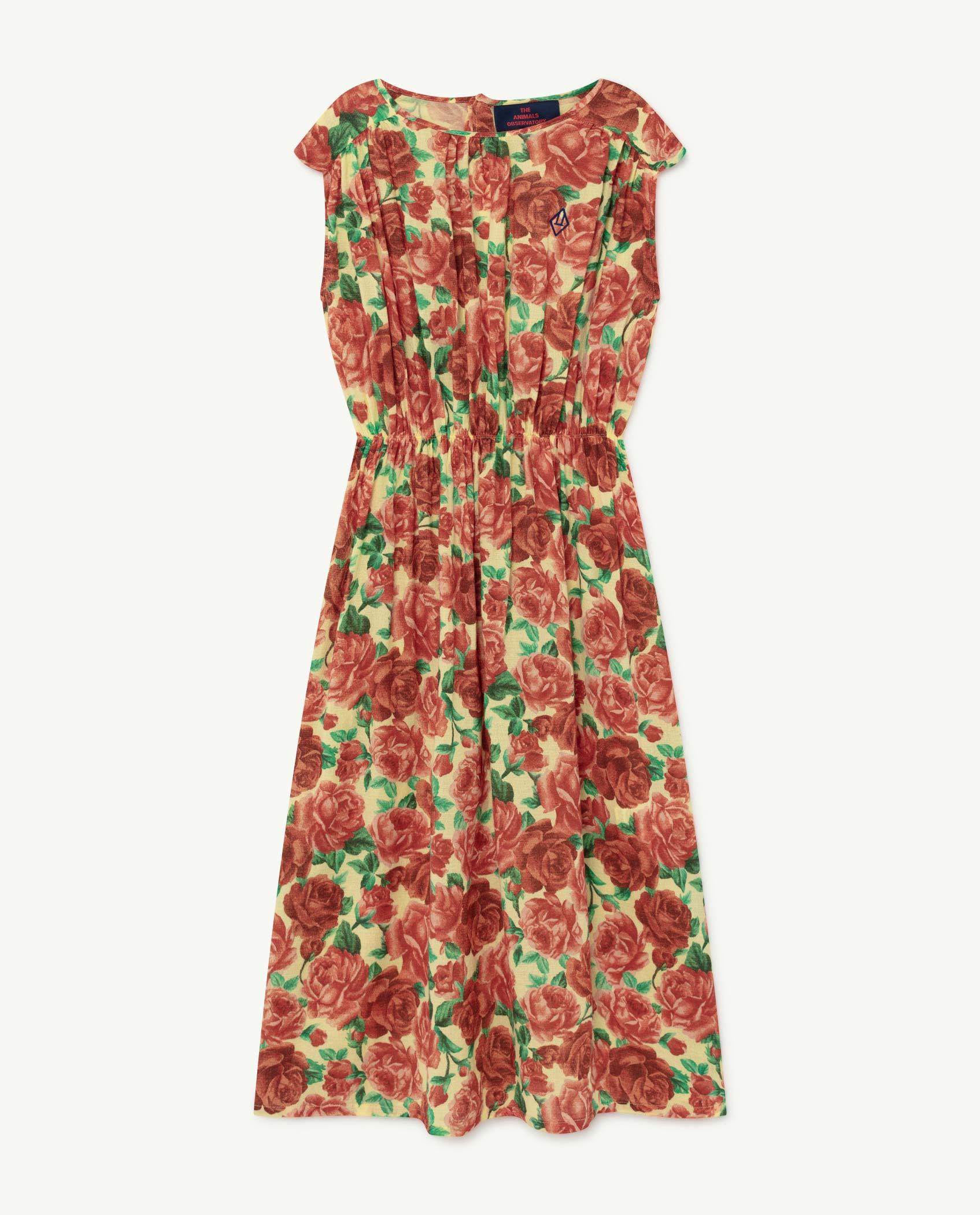 The ideal balance between elegant and comfortable, the Marten dress features cap sleeves and a soft yellow flower print.