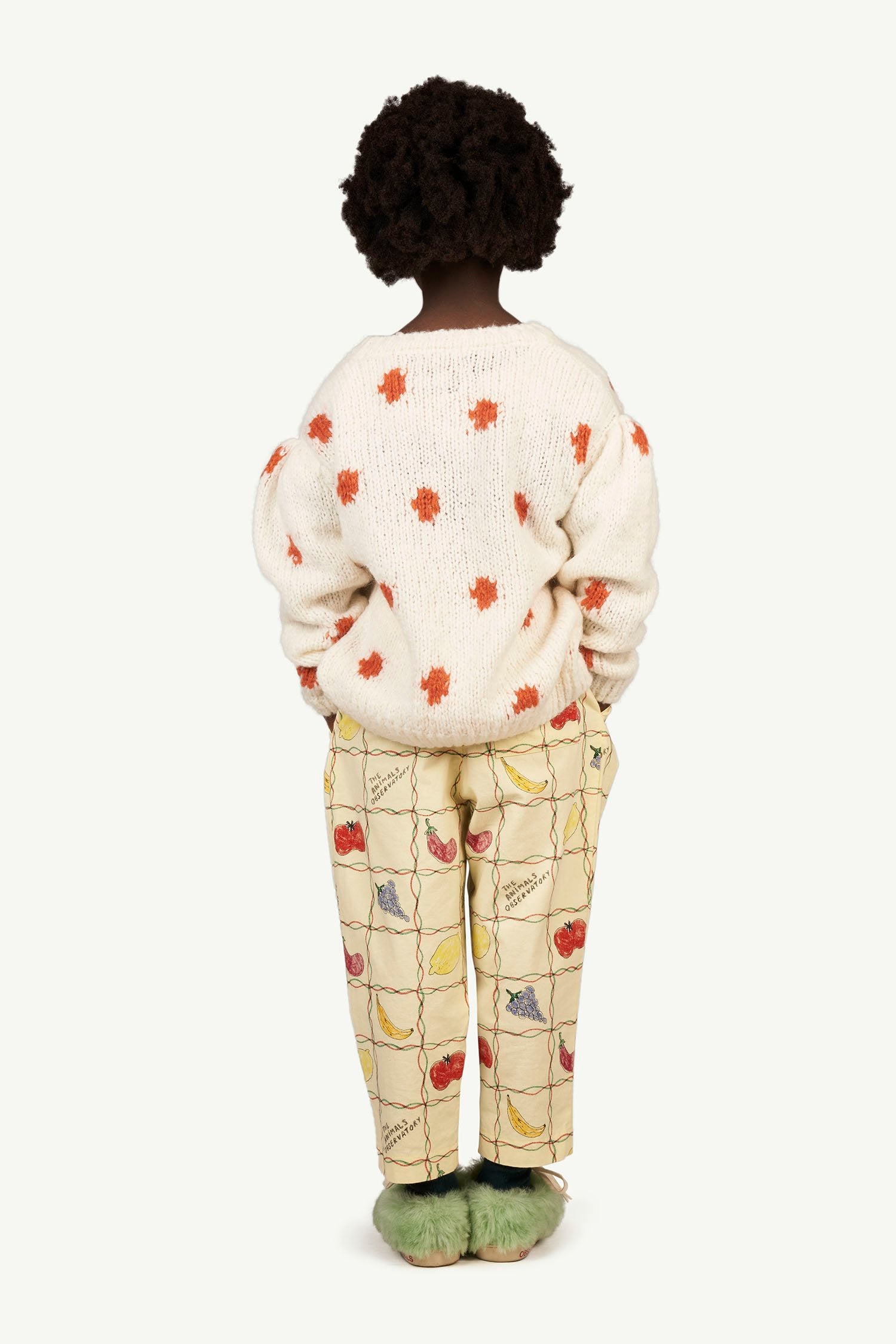 These loose cotton Soft Blue Boats Elephant Baby Trousers are so easy to wear and will make them stand out in a funky yellow fruit pattern.