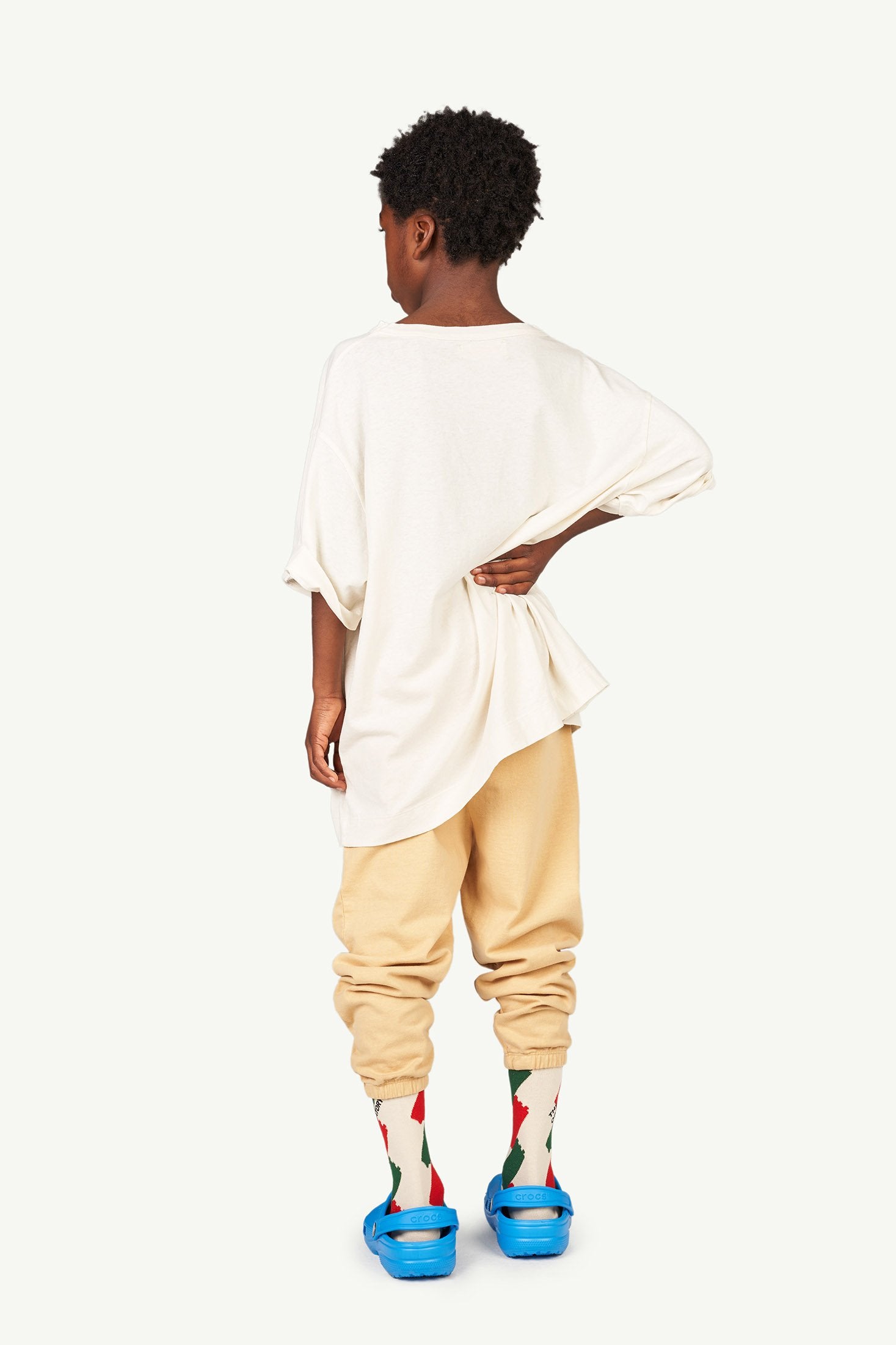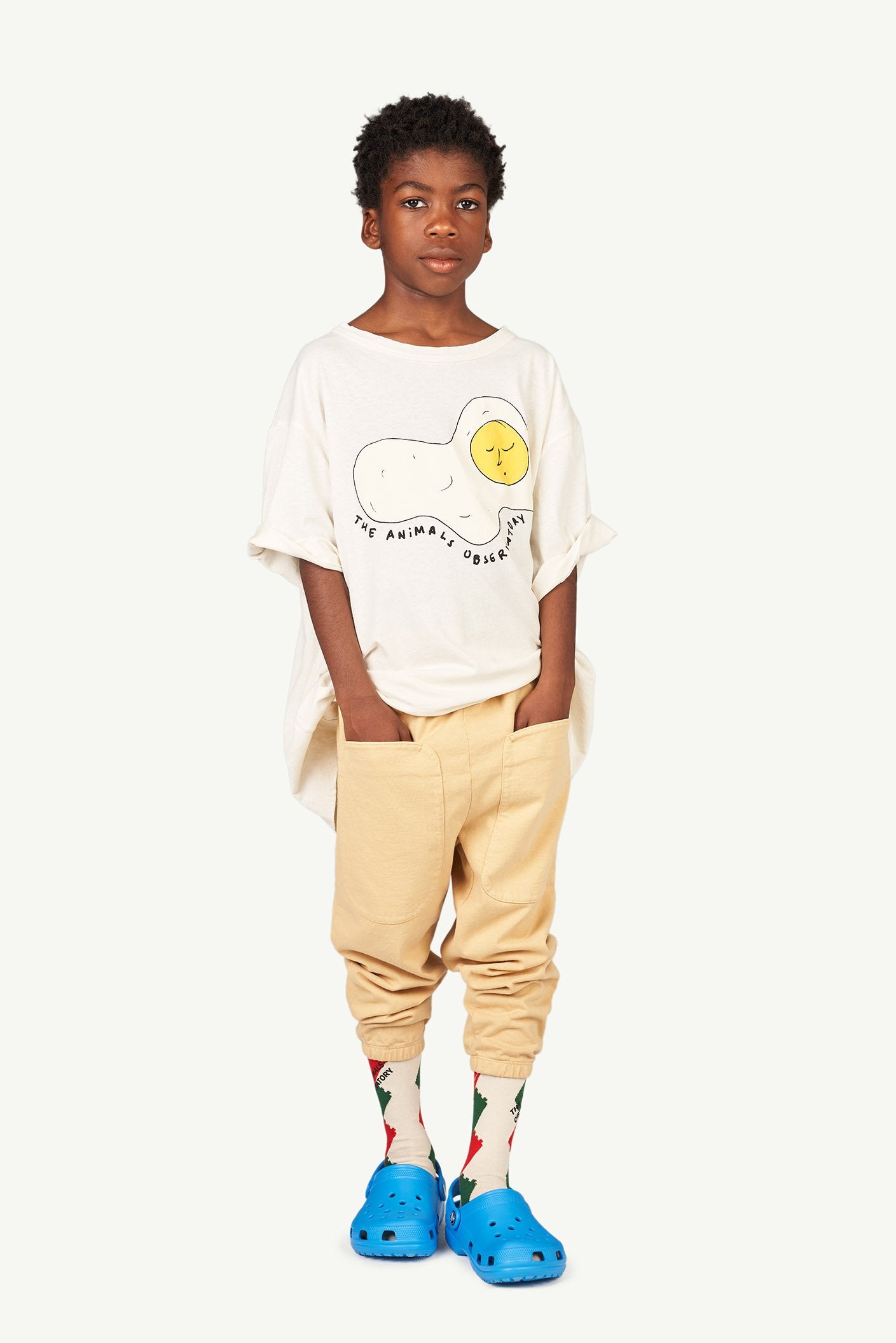This White Rooster Egg Oversize Kids T-Shirt is 100% cotton made. With a funny original illustration on the front, it's ideal to wear to spend the morning in the park. The model's height is 126 cm and is wearing size 8 years.
