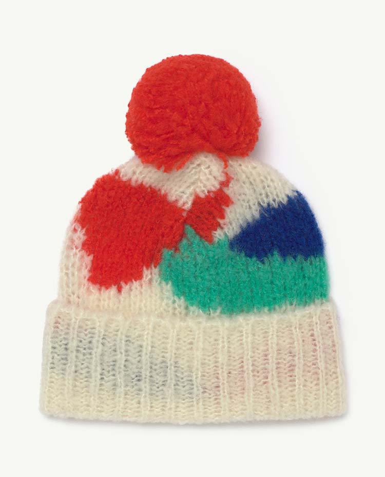 Express yourself in this cosy hat with colourful splotches of paint and a bobble on top.